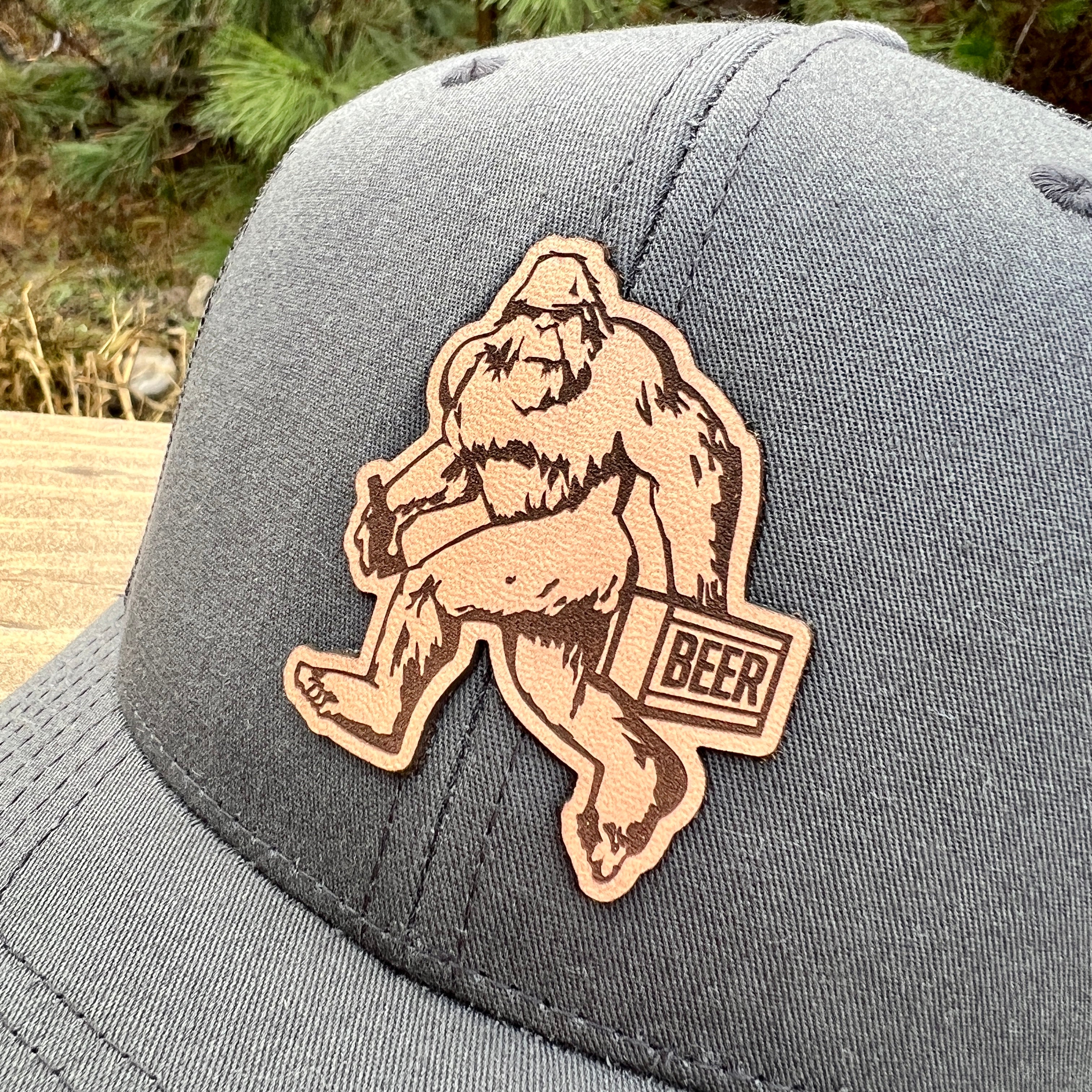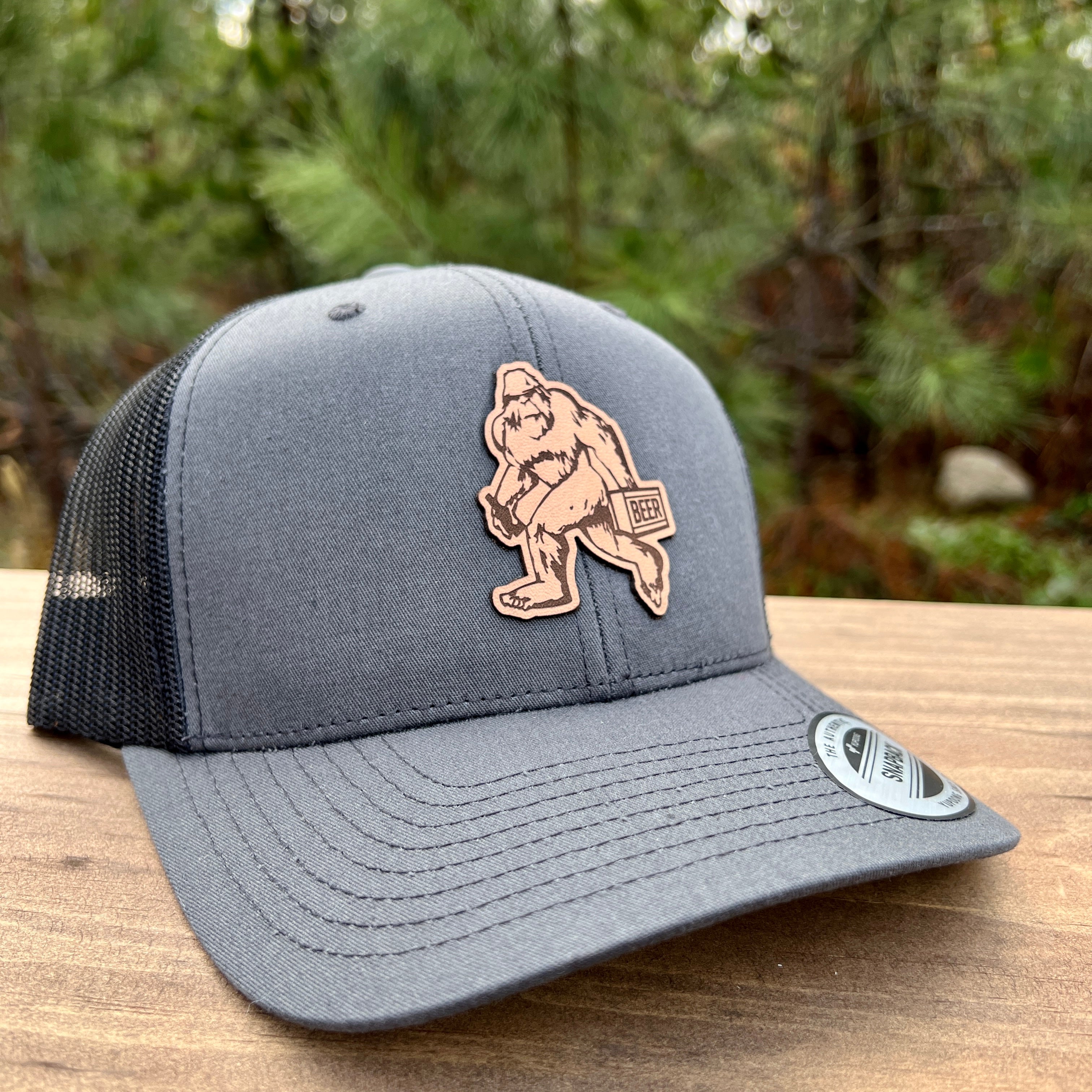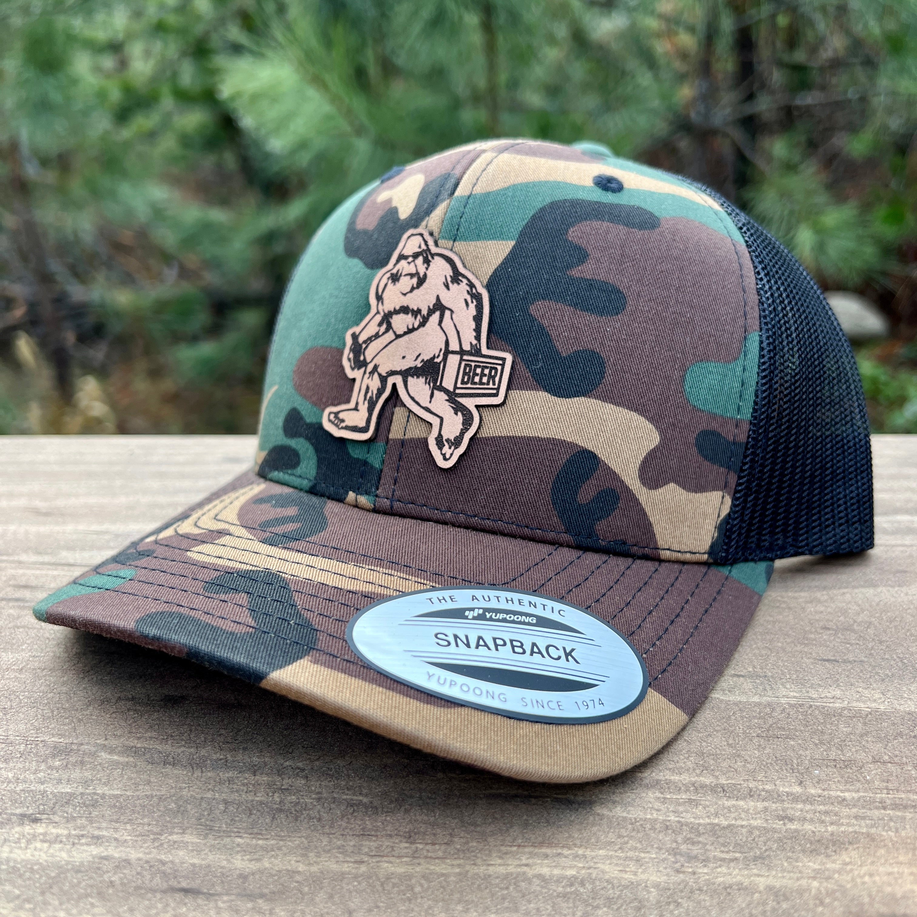 Introducing our incredible Snapback Trucker Hat featuring a unique engraved leather patch with Bigfoot carrying a case of beer! This one-of-a-kind hat is perfect for any beer lover or Bigfoot enthusiast. Made with high-quality materials, the hat combines style and comfort effortlessly. With its trendy snapback closure, it ensures a perfect fit for men and women alike. Grab this Sasquatch-inspired hat today and give it as a unique beer gift that will surely leave a lasting impression. Be ready to turn heads and spark conversations with fellow fans of Bigfoot and good brews. Get yours now and embrace your love for all things Bigfoot while sipping on a cold one!