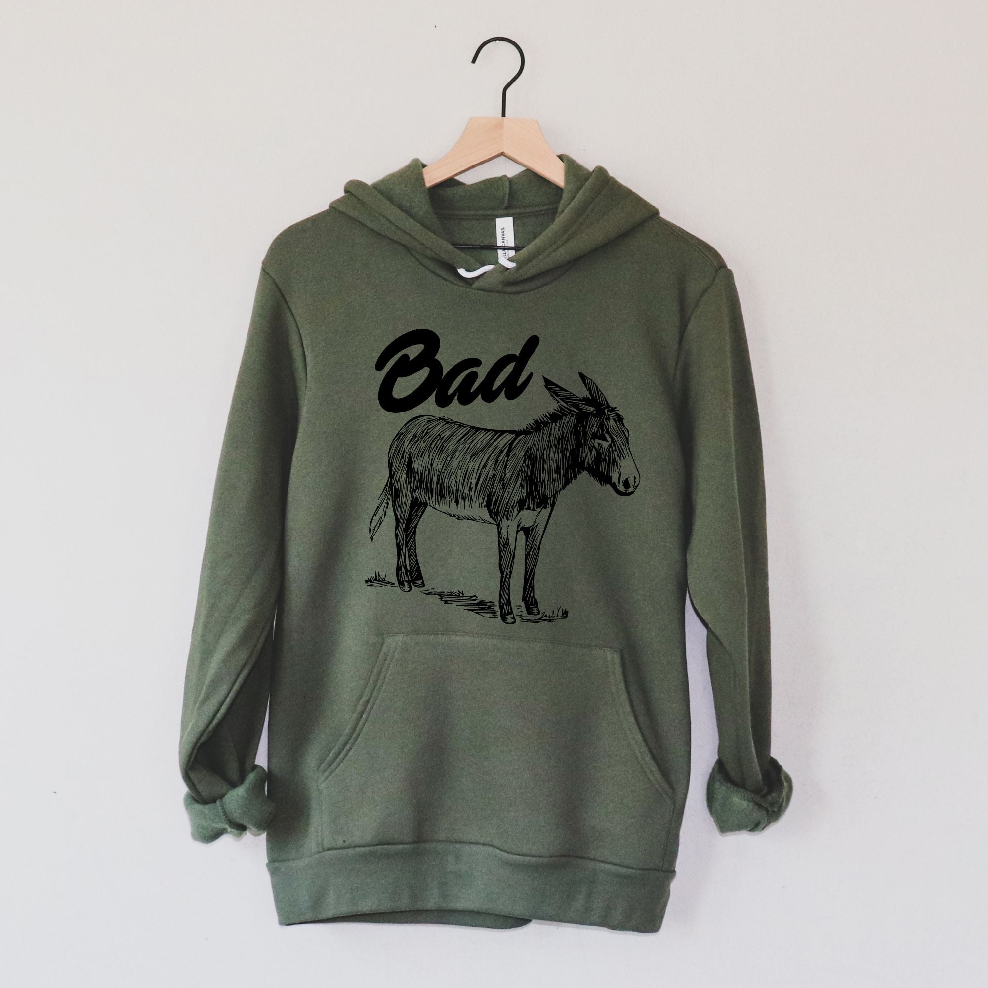 Introducing the ultimate comfort companion - our hilarious sweatshirt! Made with ultra-soft fabric, this cozy sweatshirt is designed to make you feel like you're wrapped in a cloud of comfort. But that's not all! Featuring a cheeky donkey rocking sunglasses and the word "bad" proudly displayed above it, it's the perfect way to add some humor and a touch of badassery to your wardrobe. So, slip into this effortlessly cool sweatshirt and let your inner donkey shine, because who says being comfy can't be absolutely hilarious?