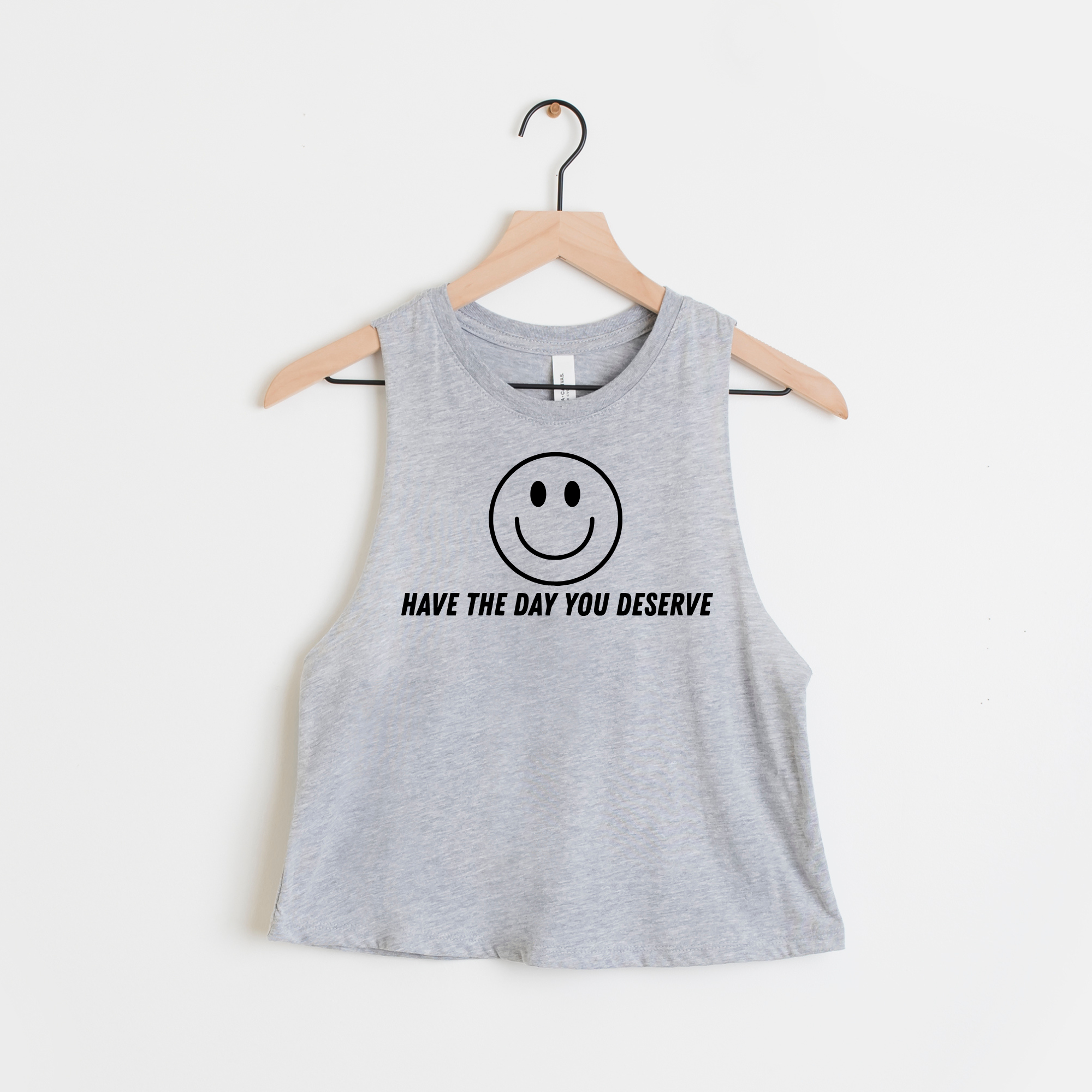 Have The Day You Deserve Happy Face Bella Cropped and Regular Tank Top Black Ink 007