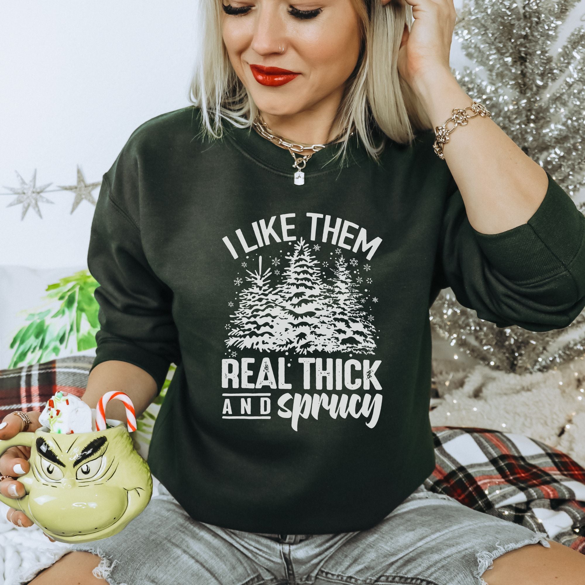 I Like Them Real Thick and Sprucy Hilarious Christmas Tree Sweatshirt - Hoodie for the Holiday Season *UNISEX FIT*