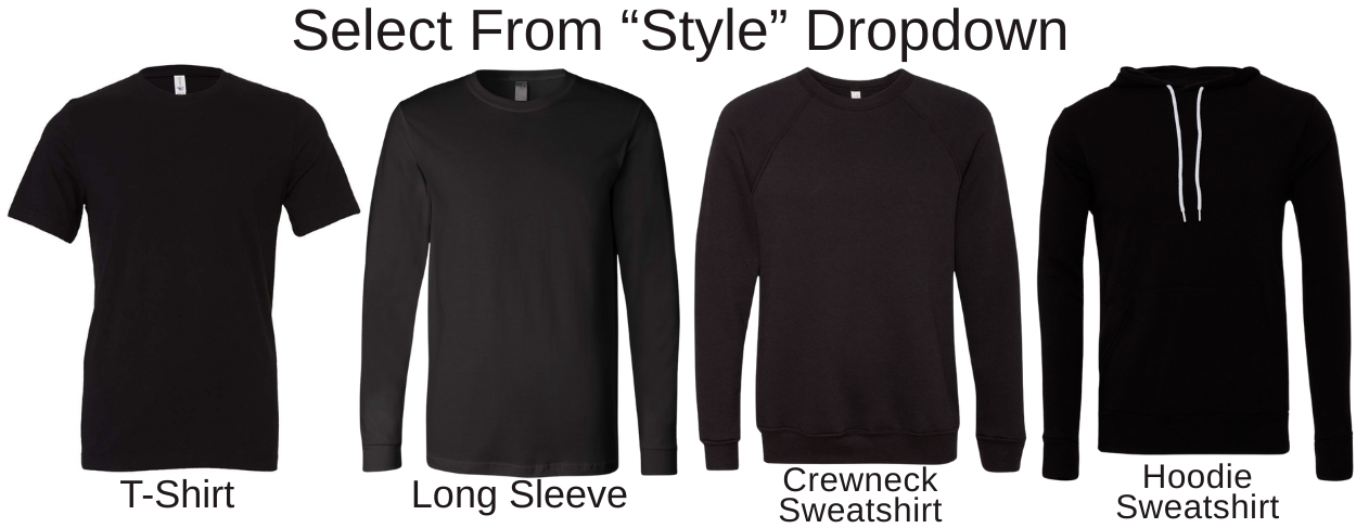 • Available on T-Shirts, Long Sleeves, Crewnecks, and Hoodies