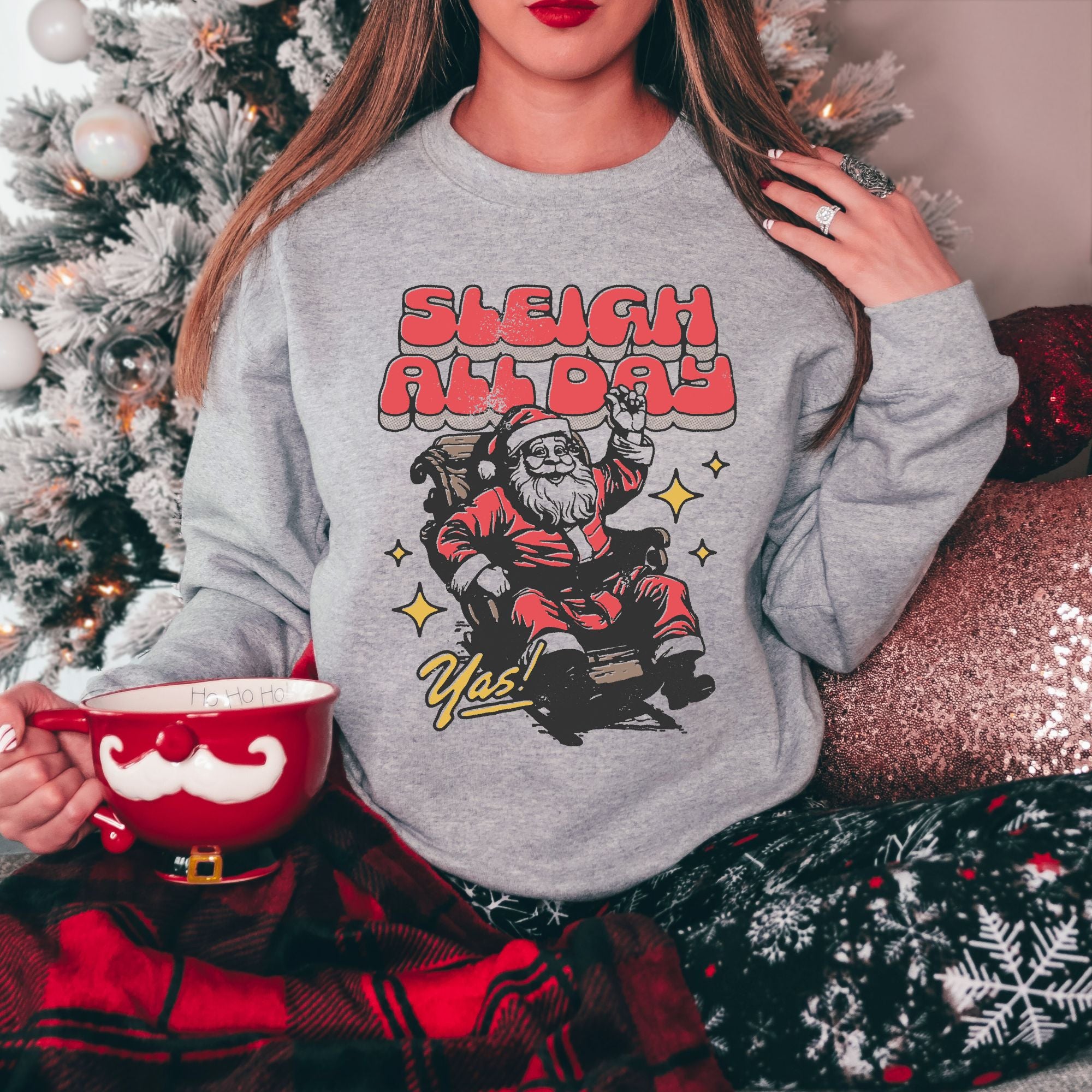 Get Festive with our Super Soft 'Sleigh All Day' Sweatshirt with Santa Clause!