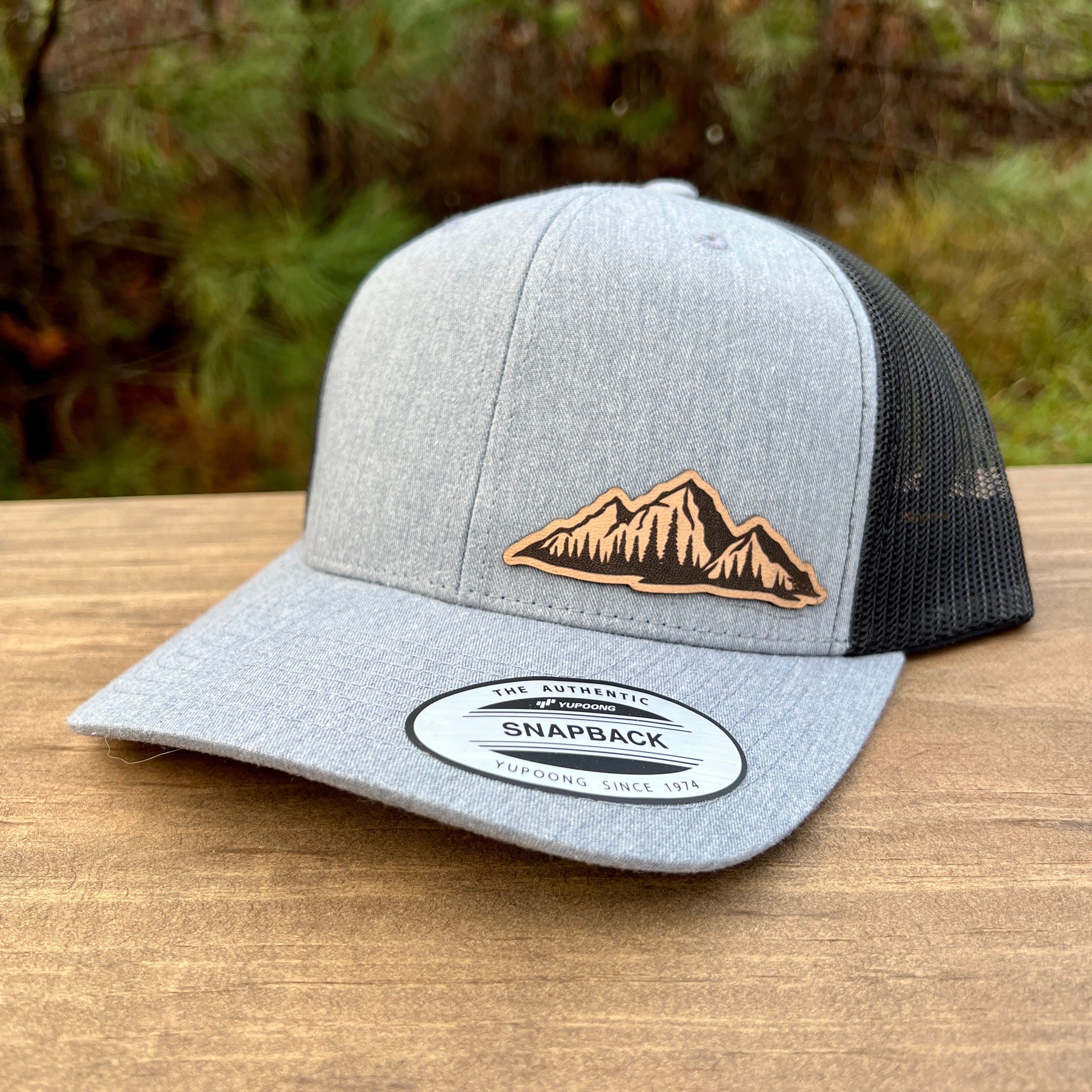 Introducing our Snapback Trucker Hat with an exquisite touch of nature-inspired finesse. Crafted with premium materials, this hat combines style and outdoor charm effortlessly. The genuine leather patch, tastefully engraved with a serene treeline scene set before majestic mountains, adds a touch of sophistication to the design. Perfect for adventurers and nature enthusiasts alike, this hat invites you to explore the great outdoors with its timeless allure. Unleash your wanderlust and embrace the spirit of adventure while showcasing your love for nature with this one-of-a-kind headpiece. Get ready to embark on thrilling journeys and make a statement through style!