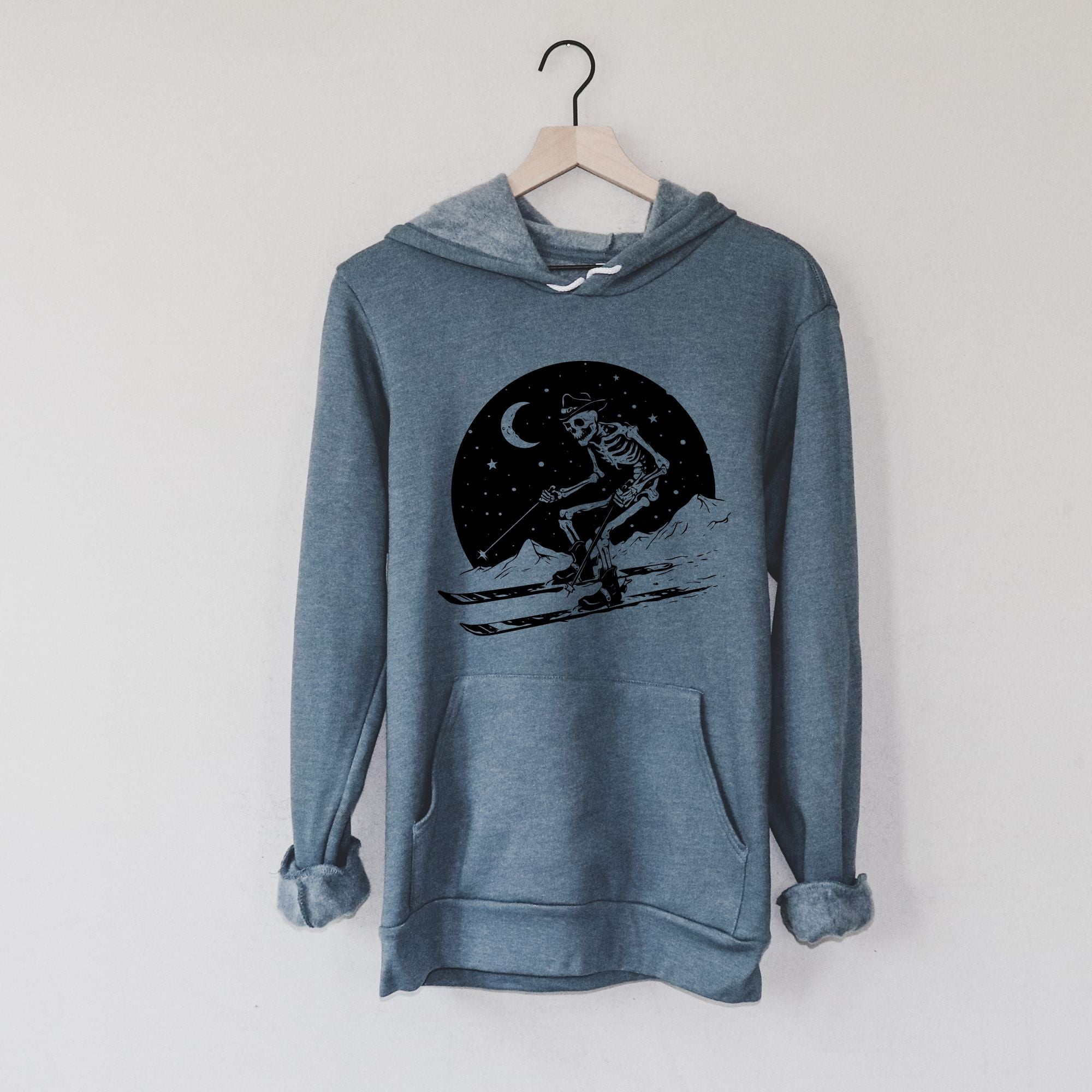 Stay cozy and stylish on the slopes with our Skeleton Skiing Bella Canvas Sweatshirt or Hoodie. Featuring a unique design of a skeleton skiing against a night sky, this unisex fit sweatshirt is perfect for any skier. A great gift for the winter sports enthusiast in your life.