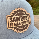 This snapback trucker hat is the ultimate accessory for woodworking enthusiasts and loggers alike. Featuring a stylish patch that proudly proclaims "Sawdust is Man Glitter," it captures the essence of the woodworking world. The eye-catching sawblade background adds a rugged touch, guaranteeing to turn heads and spark conversation. Crafted with meticulous attention to detail, this hat is the perfect gift for any woodworker or logger in your life who appreciates the artistry and craftsmanship of their trade. It's not just a hat; it's a symbol of their passion.