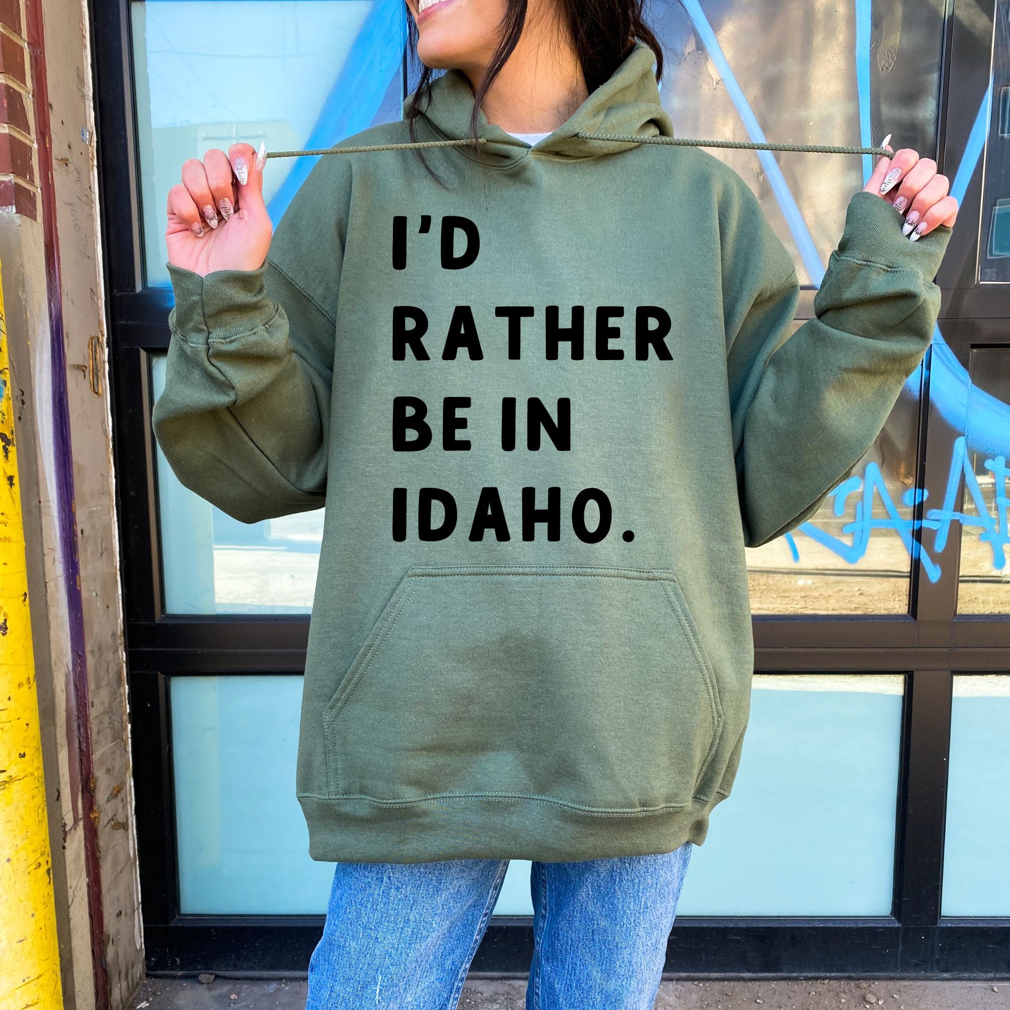I'd Rather Be In Idaho Shirt Gildan Crewneck or Hoodie Sweatshirt *UNISEX FIT*