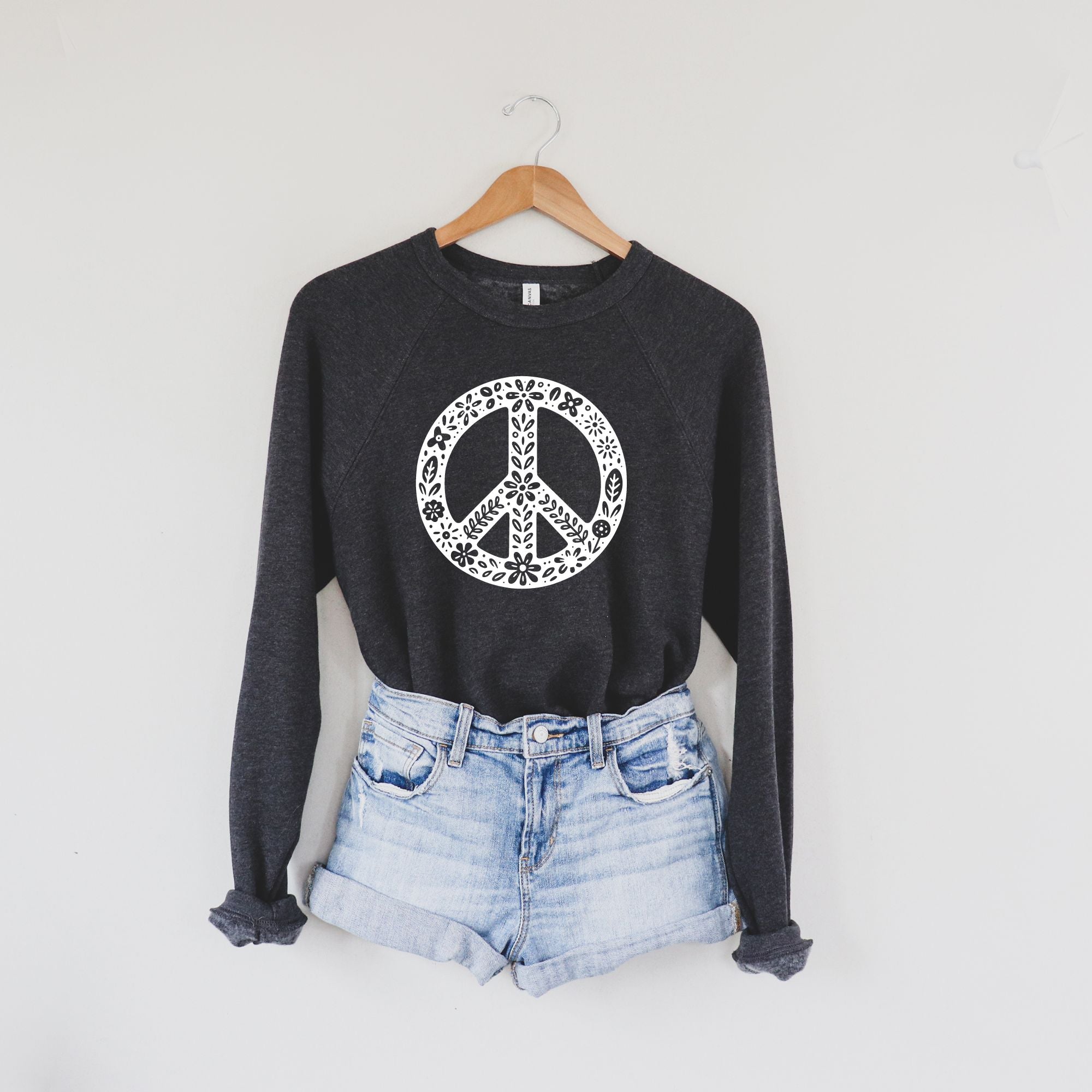 Floral Peace Sign Bella Canvas Sweatshirt or Hoodie *Unisex Fit*