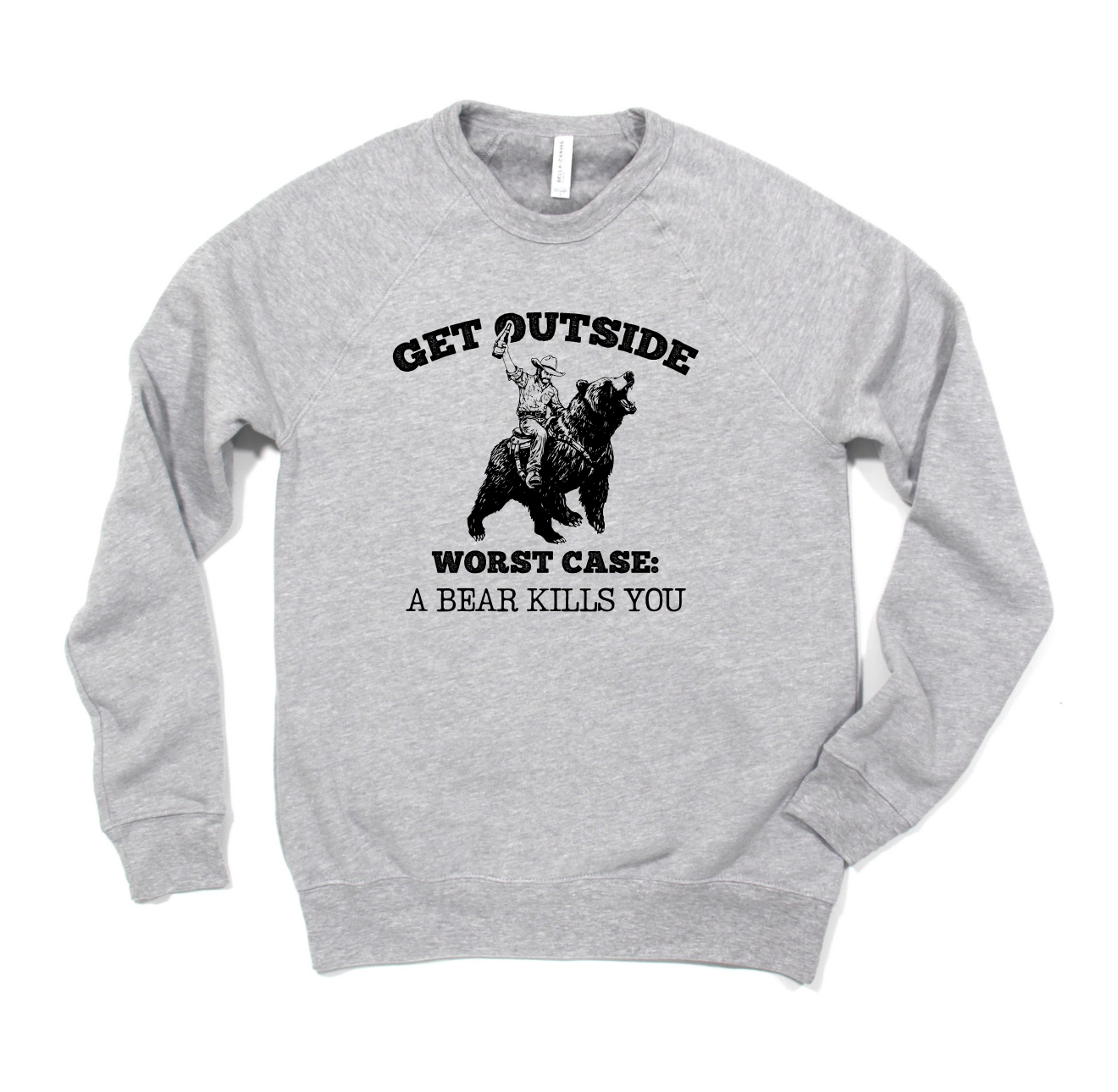 get outside sweahoodie, bear humor shirt, riding a bear, funny outdoor sweahoodie, dark humor sweahoodie, adventure humor, camping joke sweahoodie, hiking humor sweahoodie, sarcastic shirt, unisex Sweahoodie, idaho made sweahoodie, screenprinted sweahoodie, novelty graphic