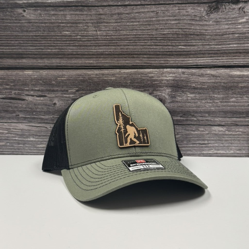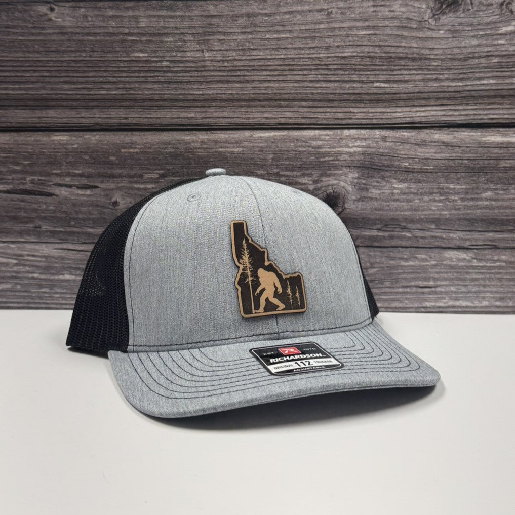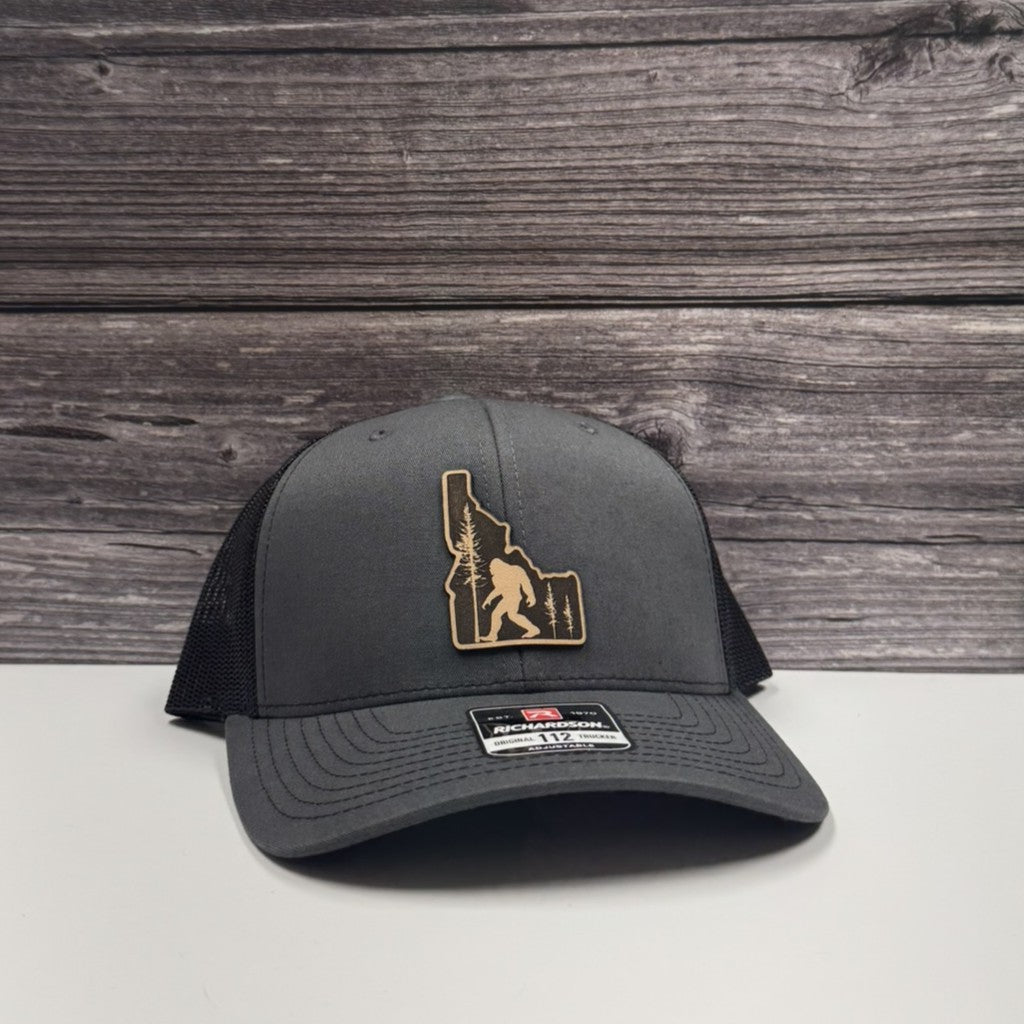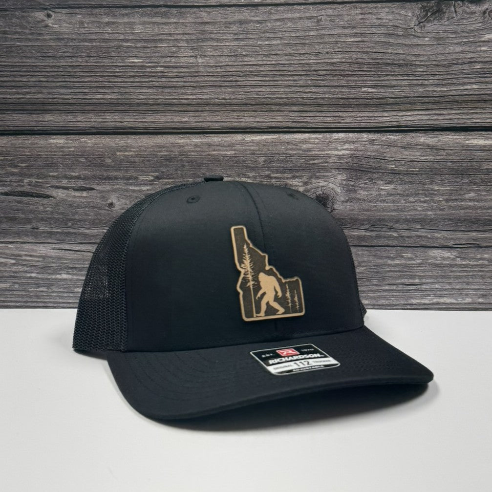 Bigfoot Idaho Hat - Unique Sasquatch Camping Trucker Hat With Leather Mesh