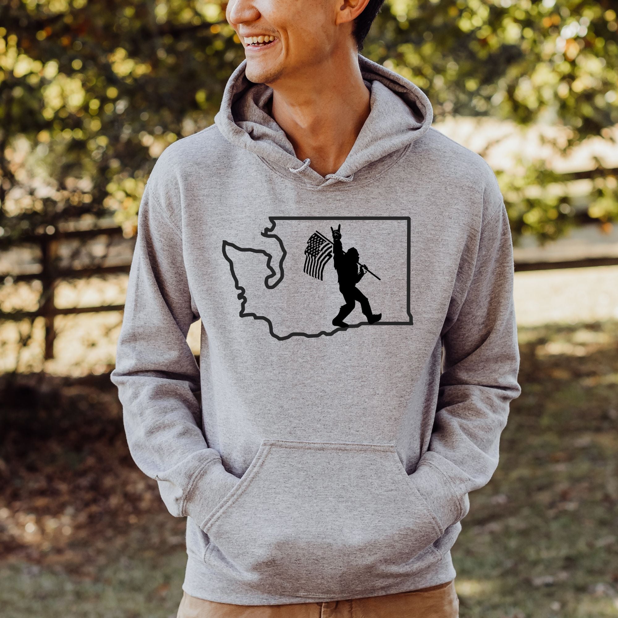 Bigfoot With Flag In Washington Sweatshirt *UNISEX FIT*
