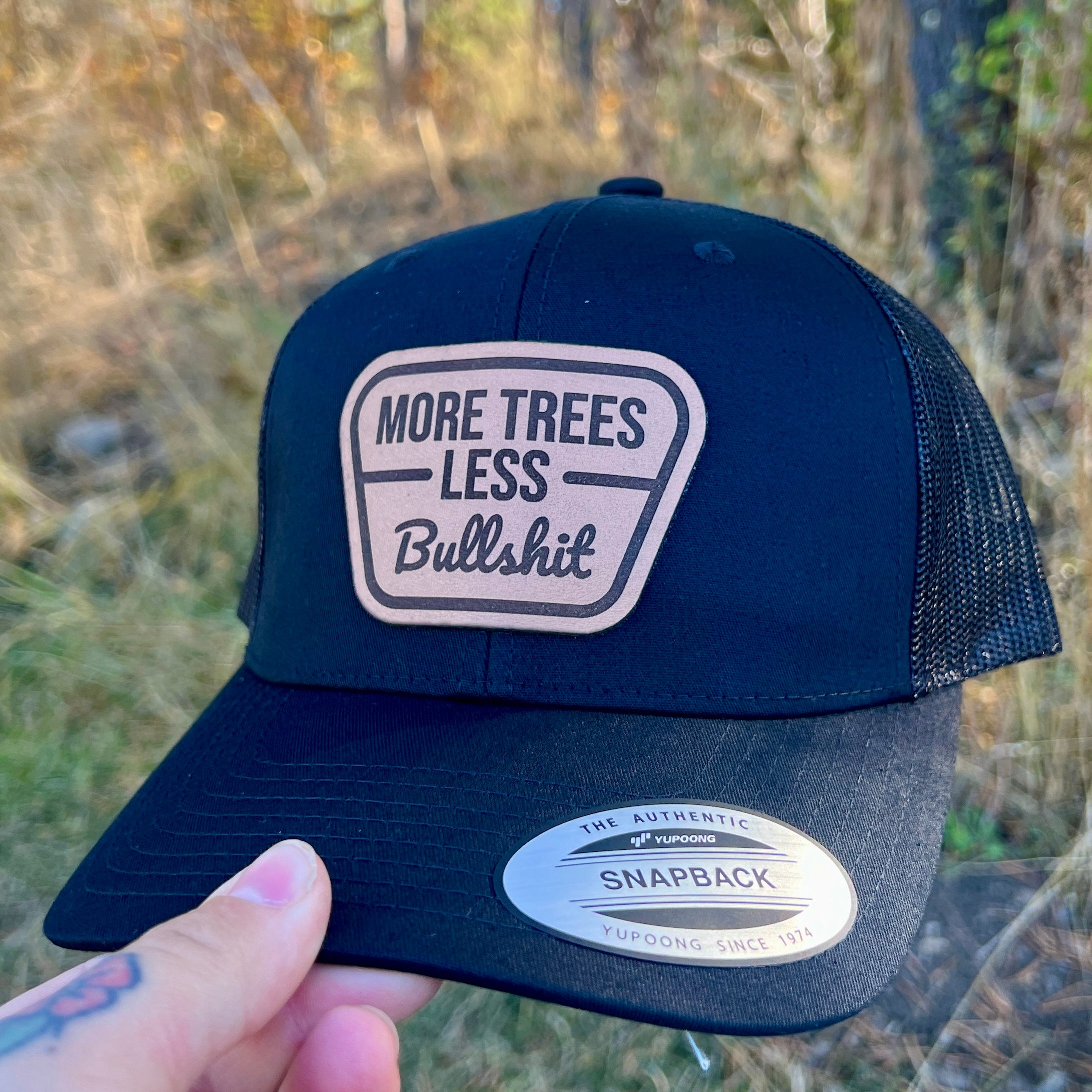 More Trees Bullshit Leather Patch Hat – 208 Brim Co