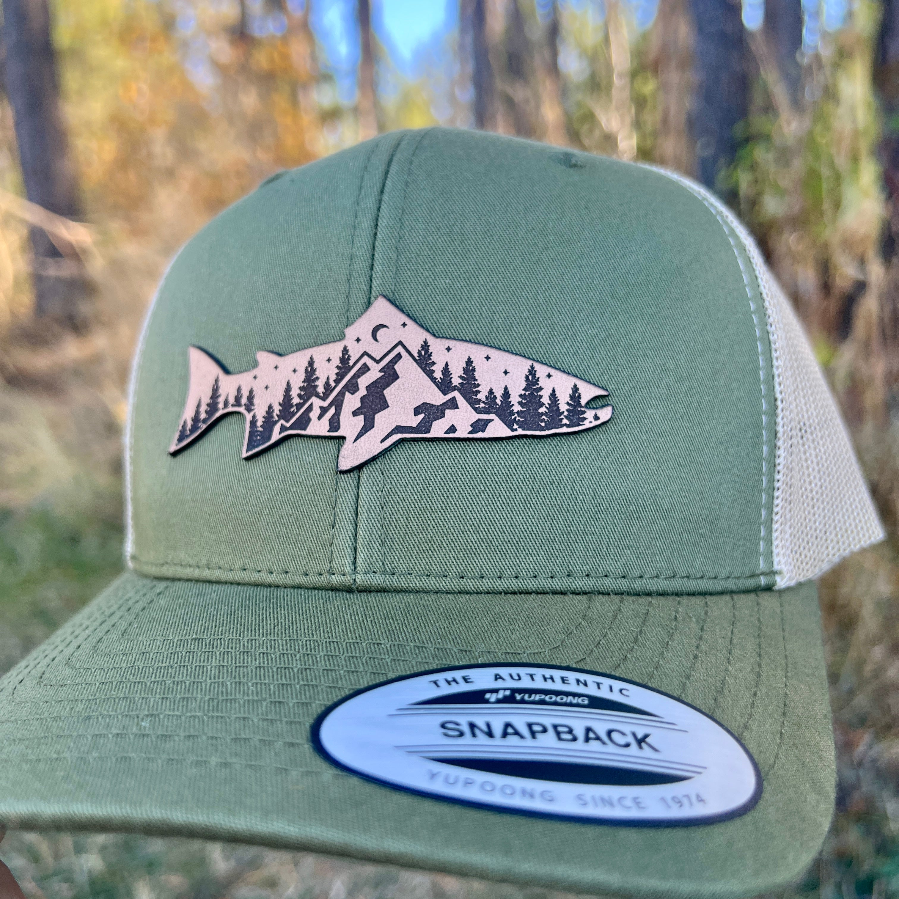 This high-quality fishing hat features a unique leather patch and a snapback design. Perfect for anglers and trout enthusiasts, it makes a great gift for the avid fisherman in your life. With this nature-inspired design, you'll feel like you're right in the heart of the fishing scene.