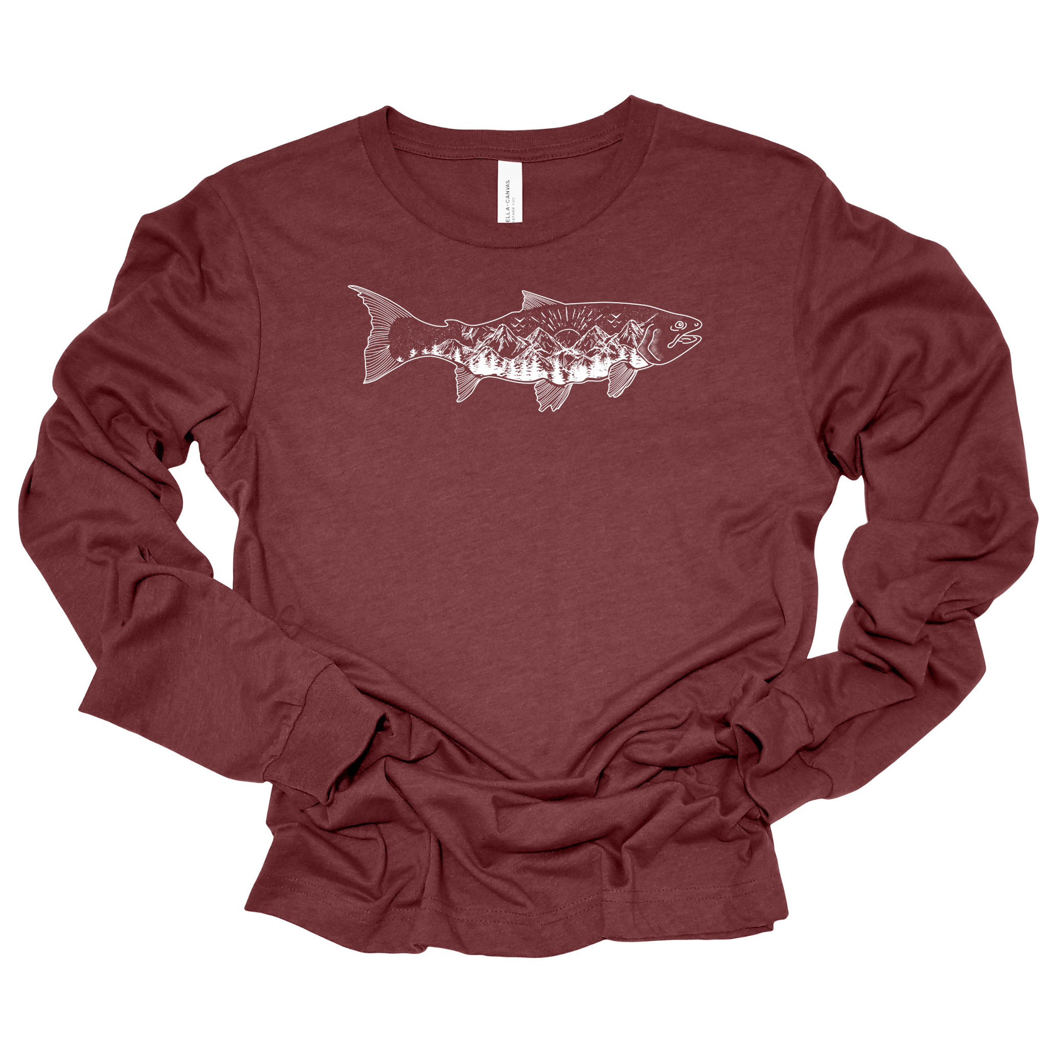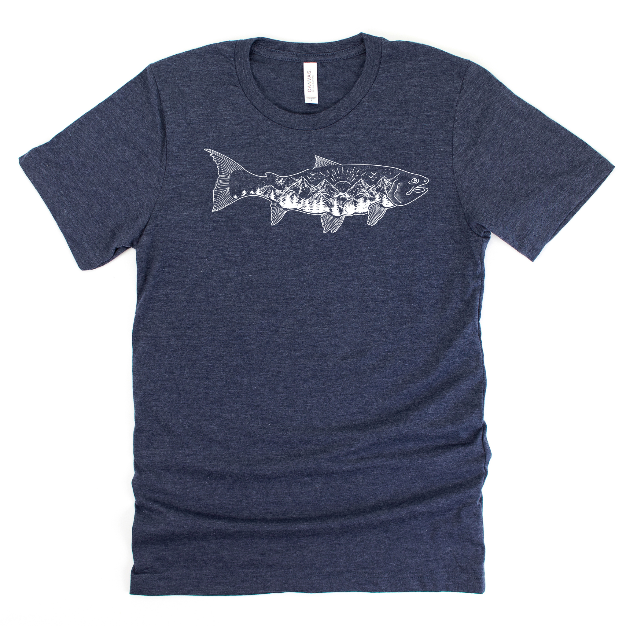 Fishing TShirt Men - Men's Fishing Shirt Unisex Tee | Graphic Fish Mountain Design