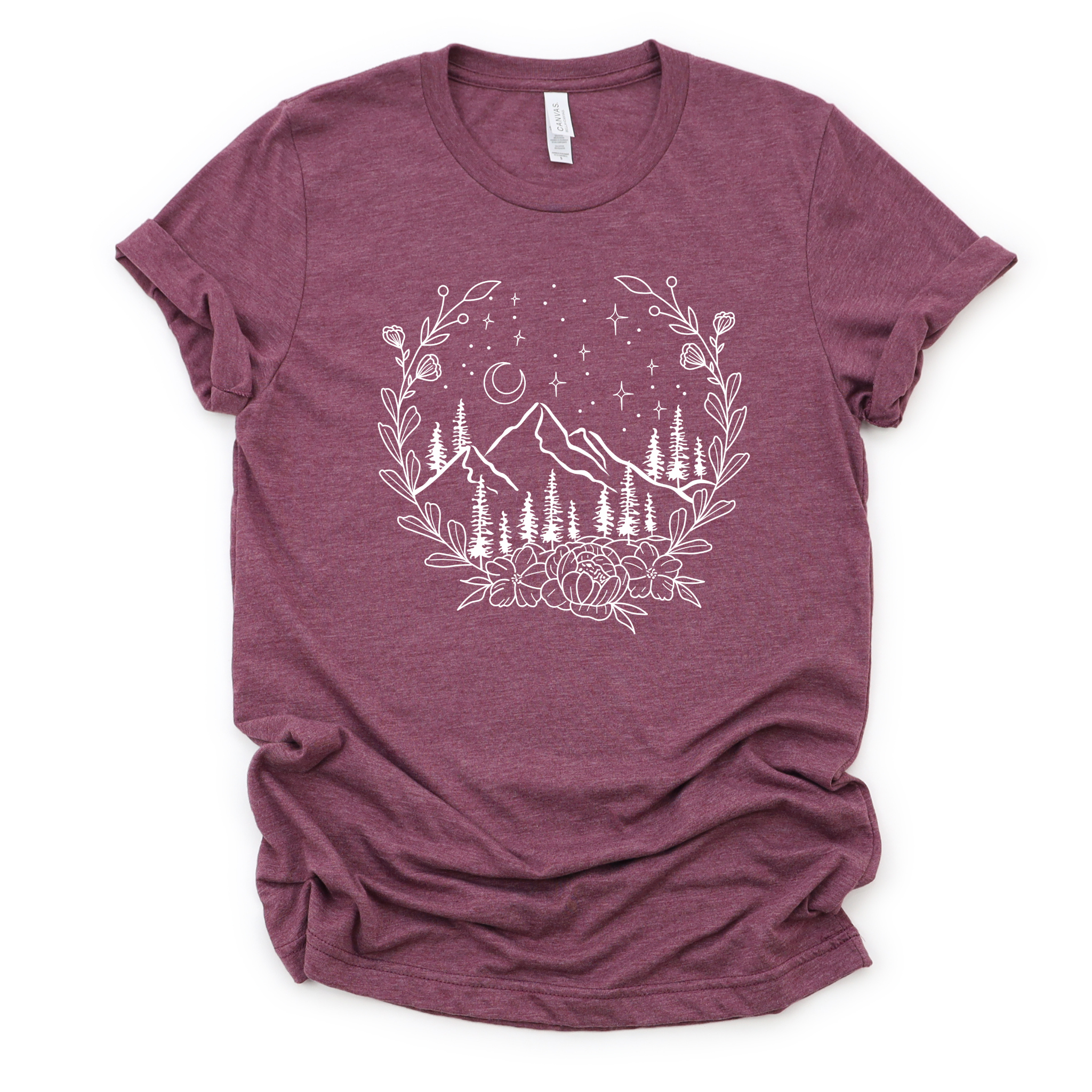 Mountain Graphic Tee - Floral Mountain Shirt | Unisex Nature Tee, Soft Cotton Blend