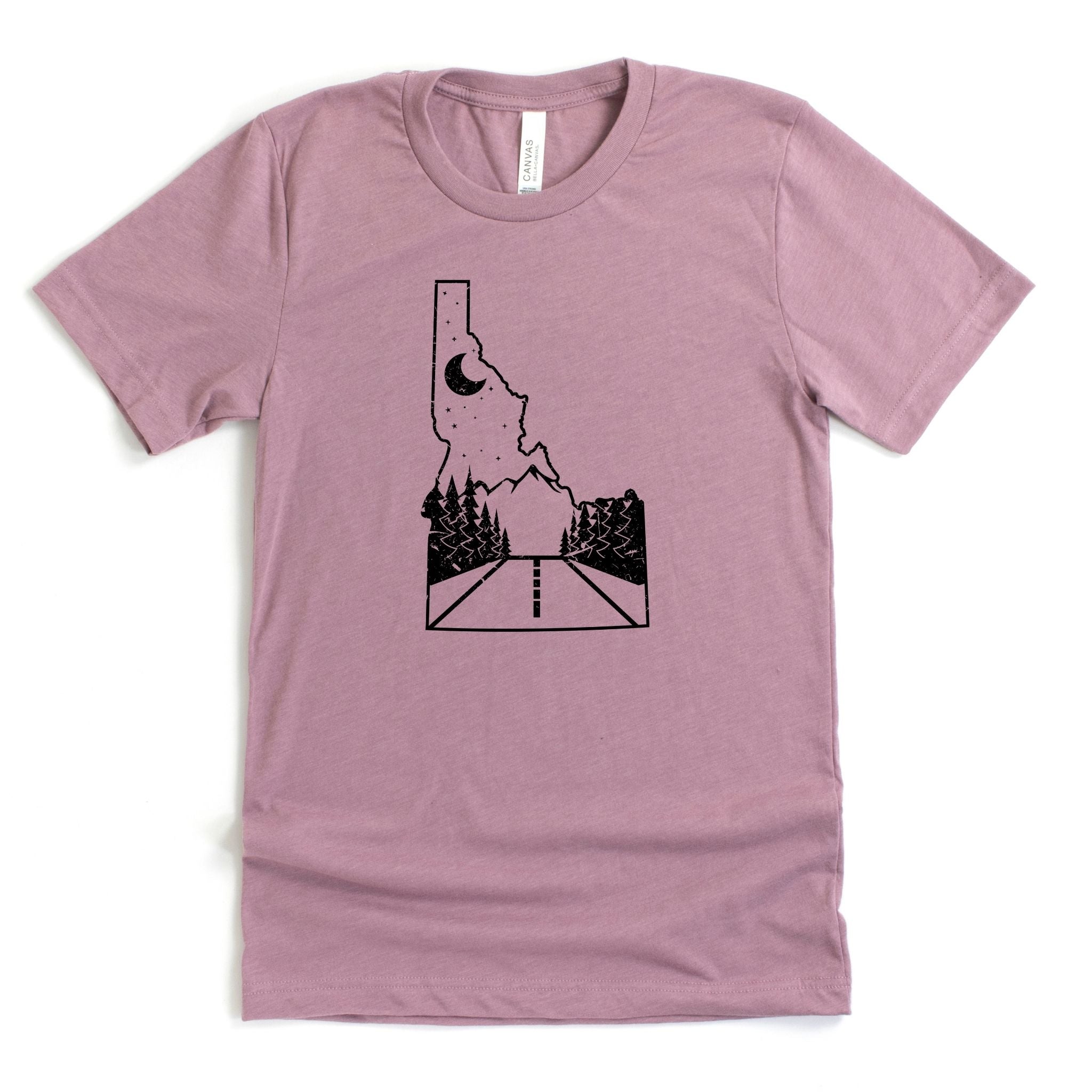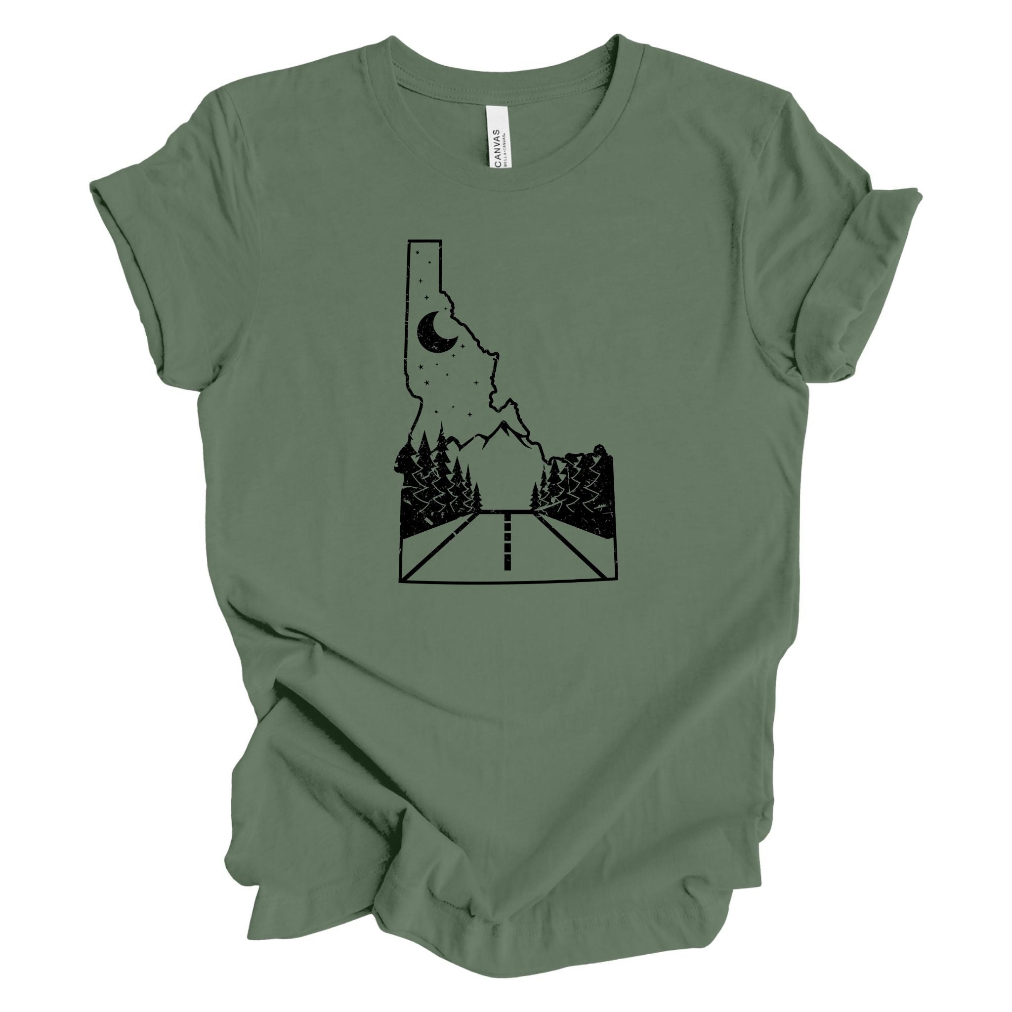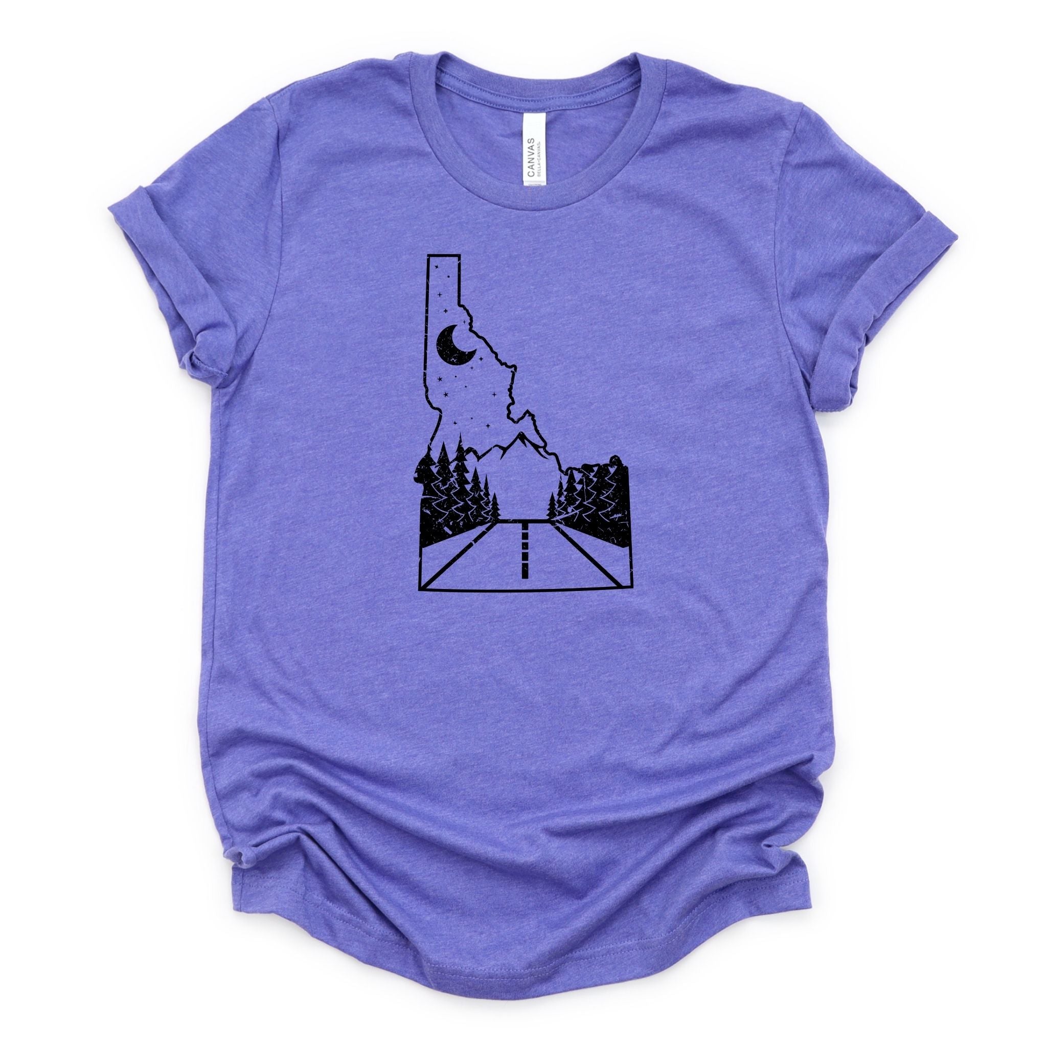 Keywords: Idaho road, mountain tee, nature shirt, road trip tee, outdoor graphic, scenic shirt, adventure tee, Idaho mountains, bella canvas, 208tees, wander shirt, explore Idaho, unisex long sleeve