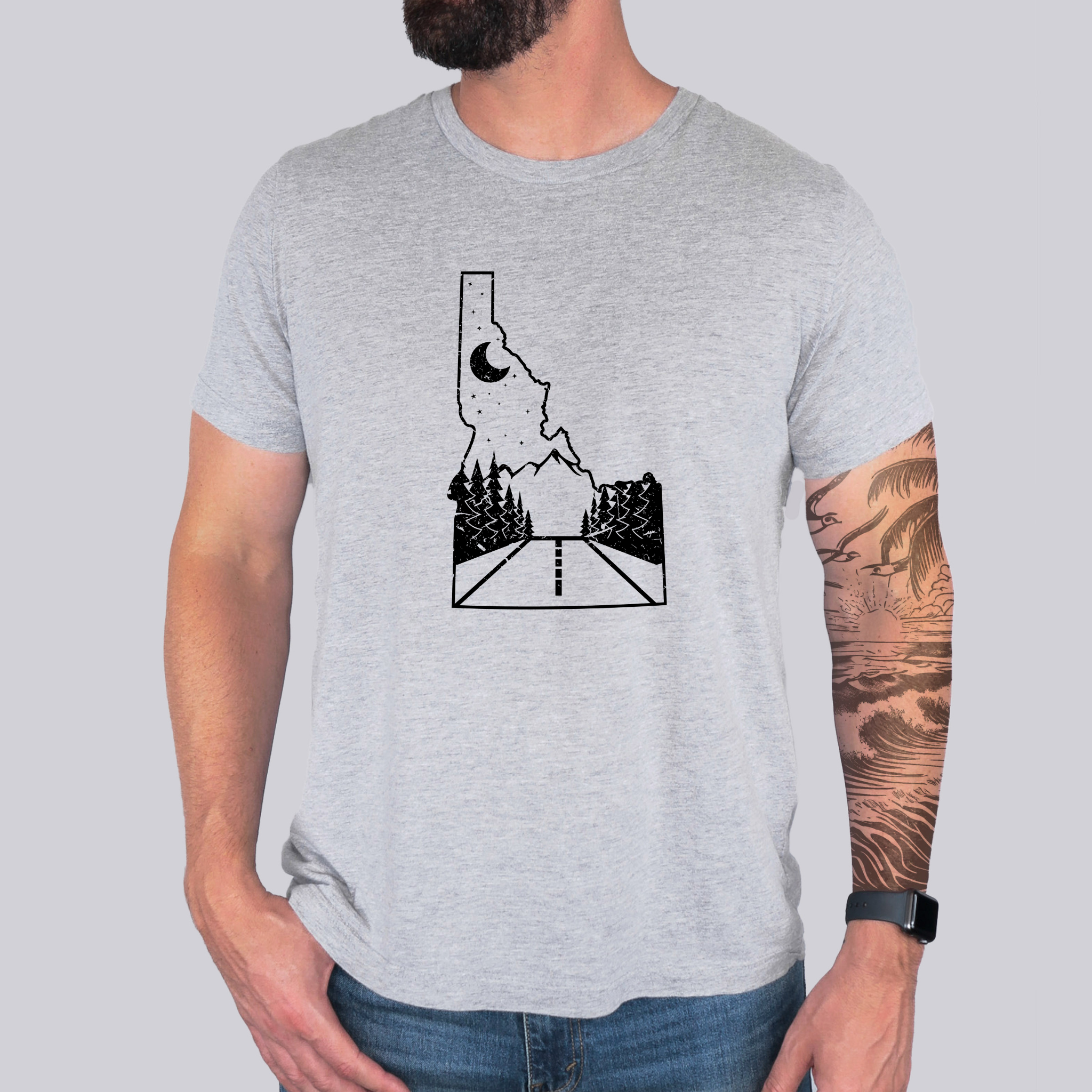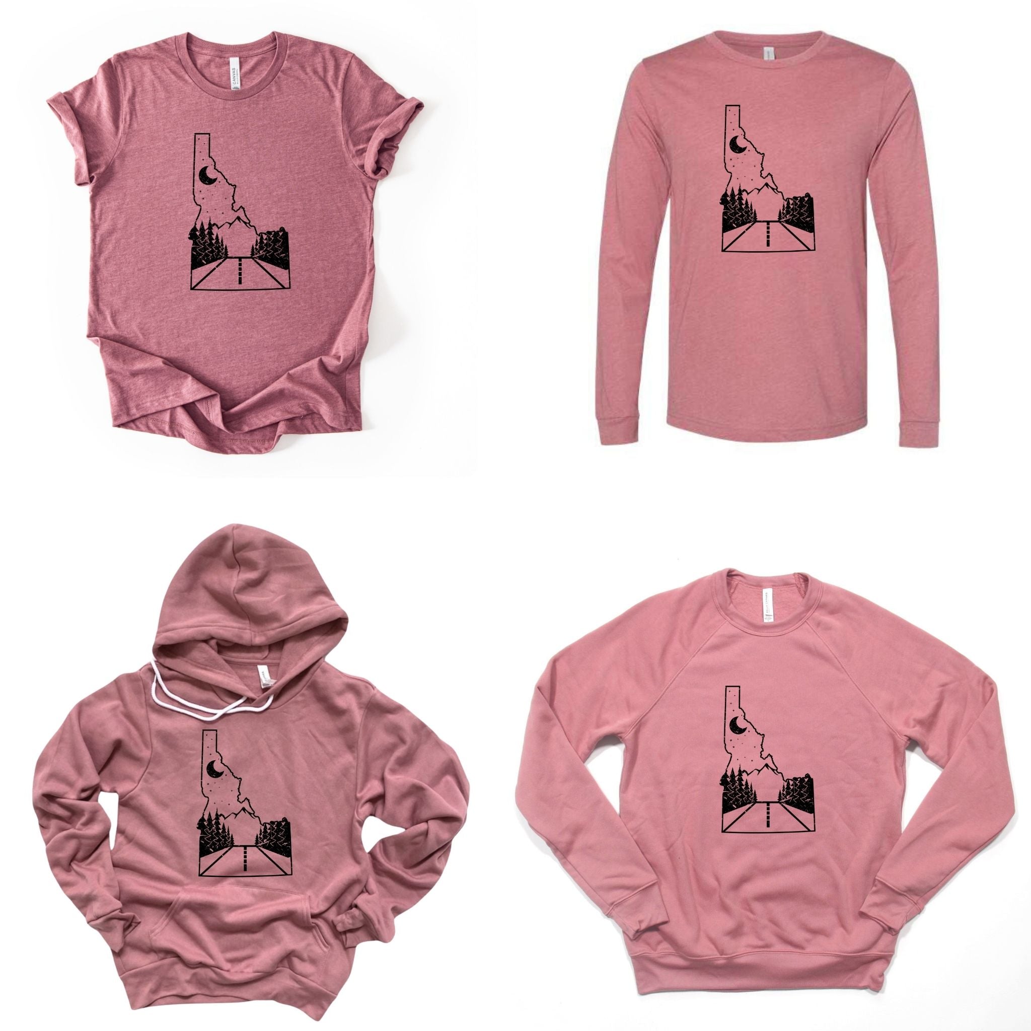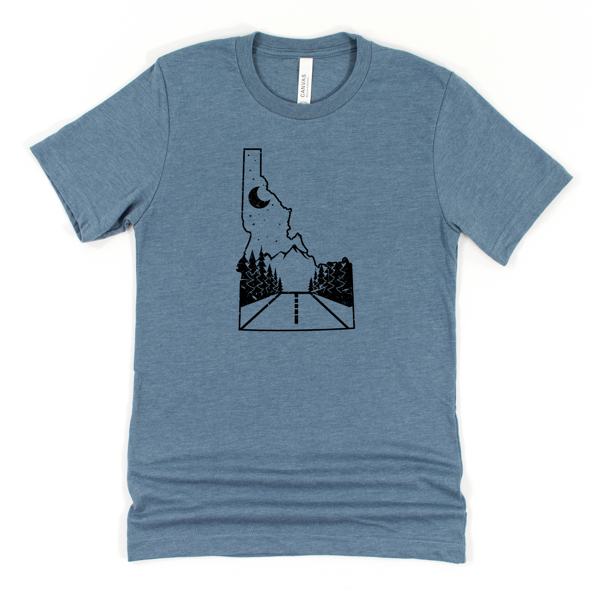 Keywords: Idaho road, mountain tee, nature shirt, road trip tee, outdoor graphic, scenic shirt, adventure tee, Idaho mountains, bella canvas, 208tees, wander shirt, explore Idaho, unisex long sleeve
