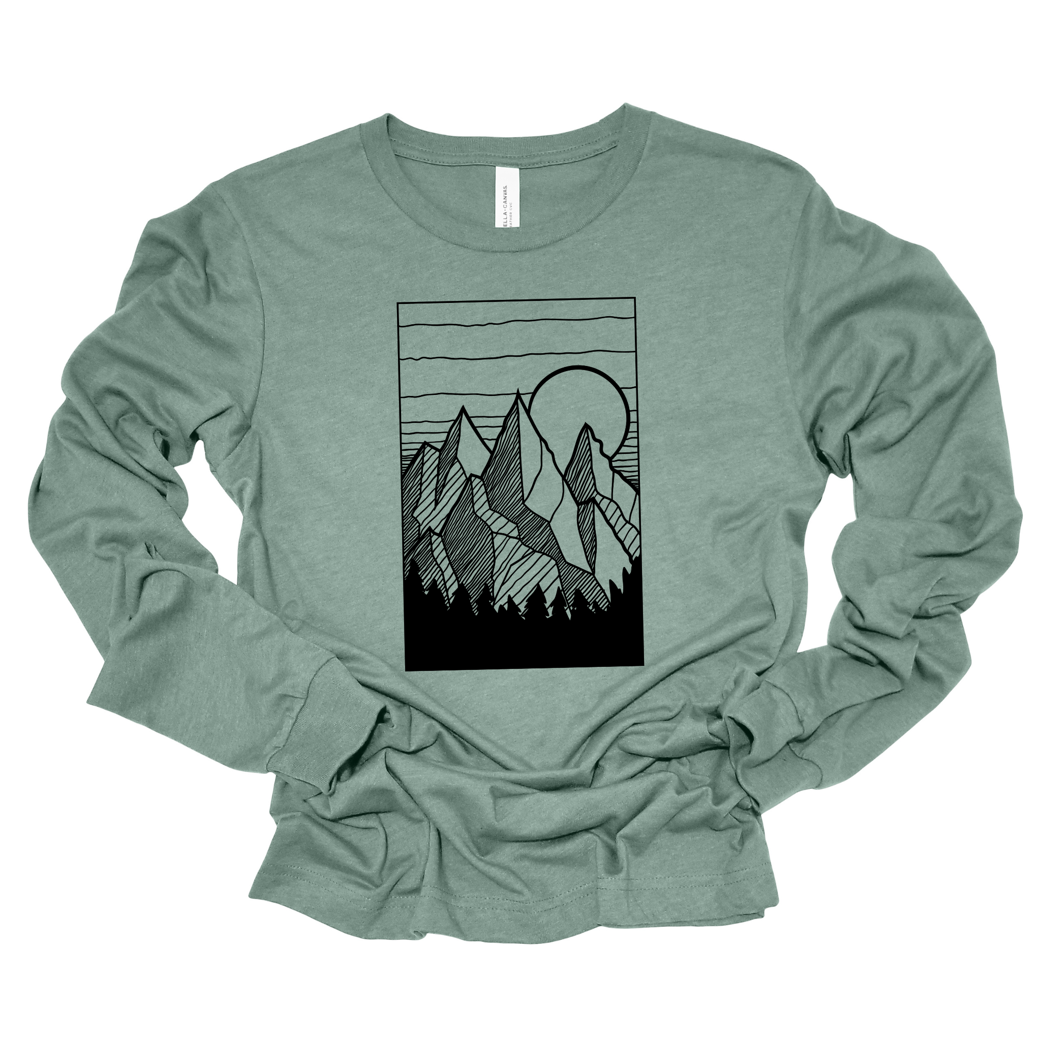 This mountain graphic tee offers a unisex fit shirt designed to deliver comfort and style for outdoor enthusiasts and casual wearers alike. Made from a soft cotton blend, this nature t shirt features a striking tree illustration shirt that captures the essence of the forest design top, perfect for those who love hiking or simply embracing casual mountain style. The hand screen printed design ensures long-lasting vibrancy, making this Bella Canvas tee a reliable choice for eco friendly apparel lovers.