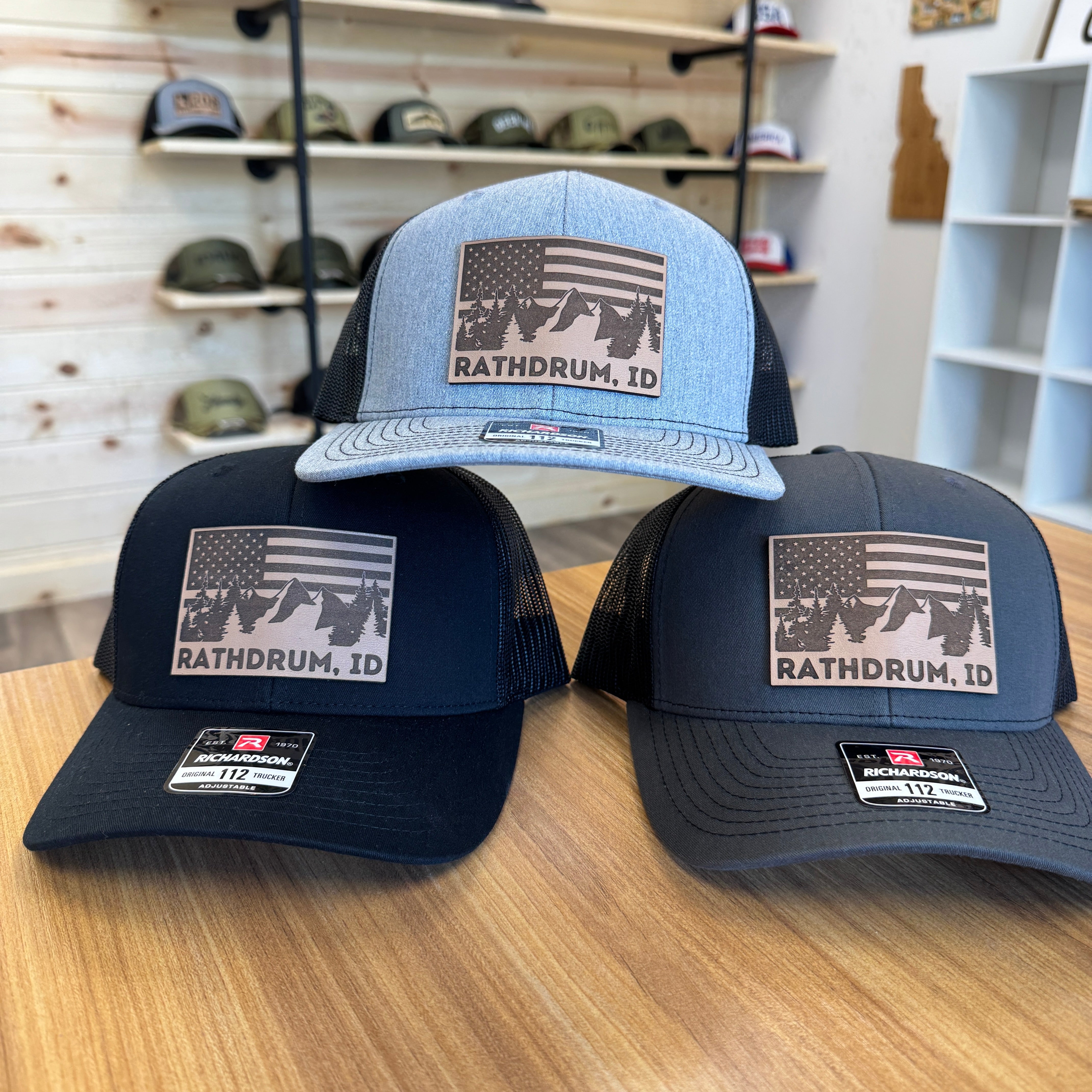 Crafted with genuine leather patch details and a breathable mesh back, this Richardson 112 trucker or Yuupong snapback cap offers superior ventilation and durability. The snapback closure ensures a customizable fit for all head sizes, while the high-quality materials provide long-lasting wear. This state pride apparel piece is an ideal Idaho pride gift for natives and visitors alike who appreciate rugged design and authentic craftsmanship.