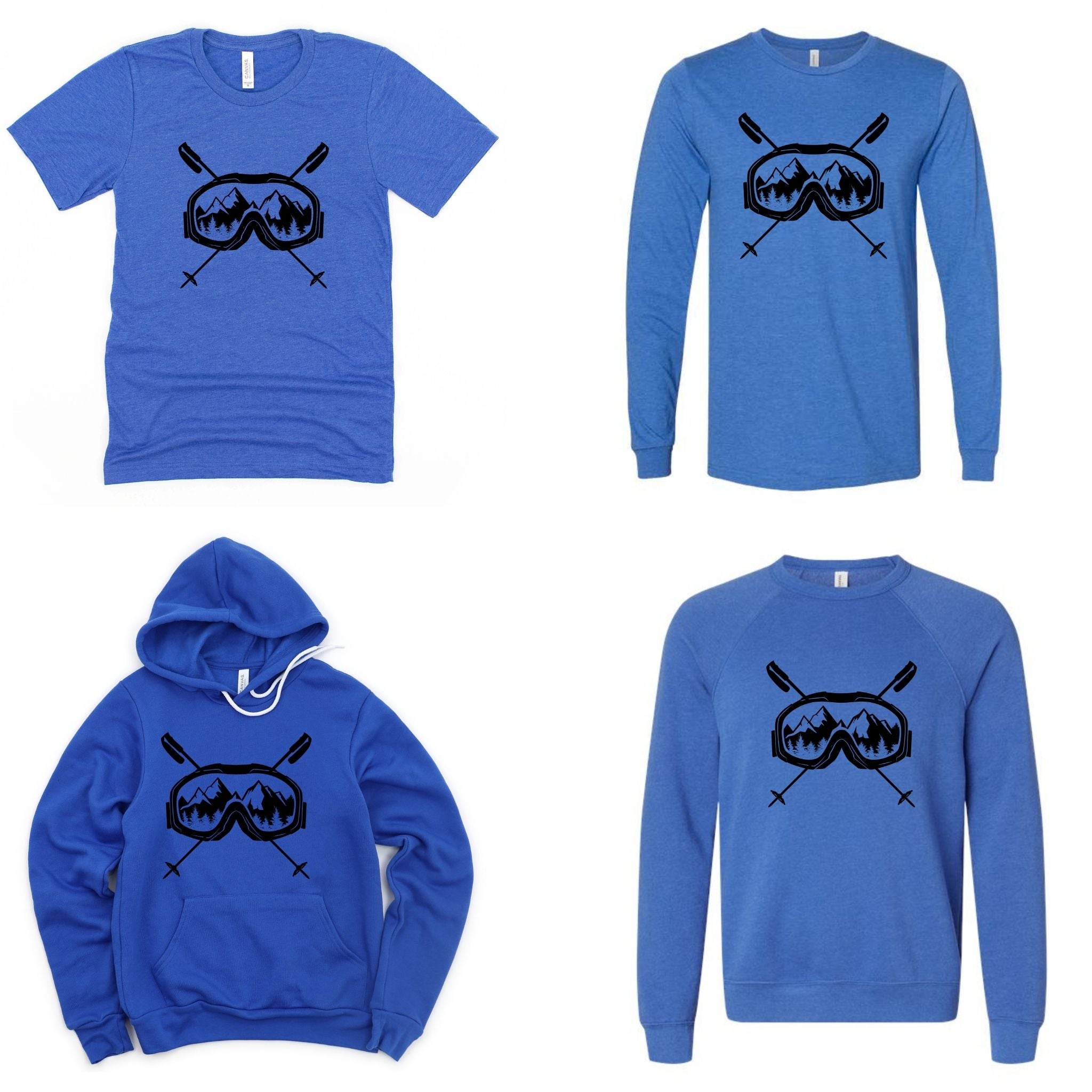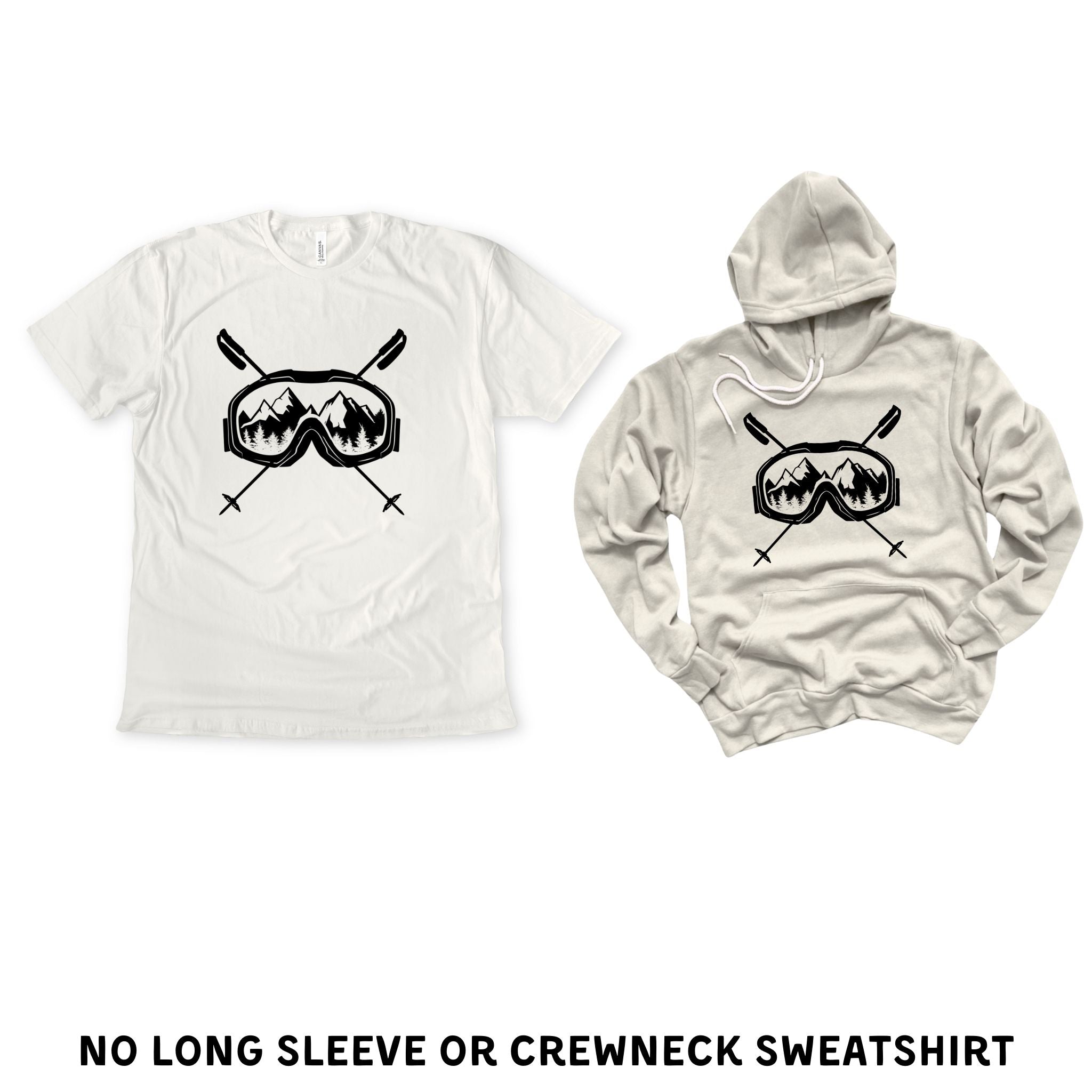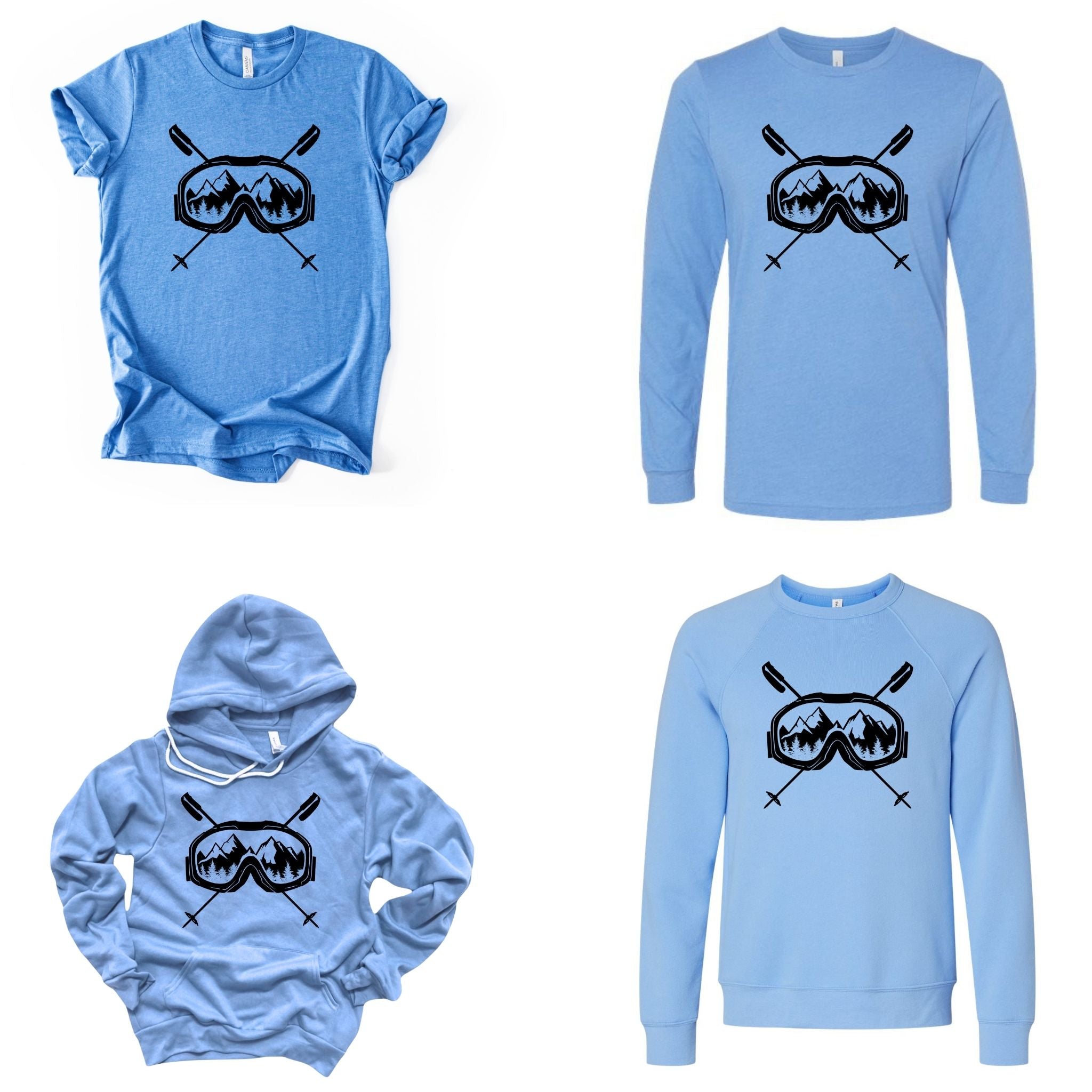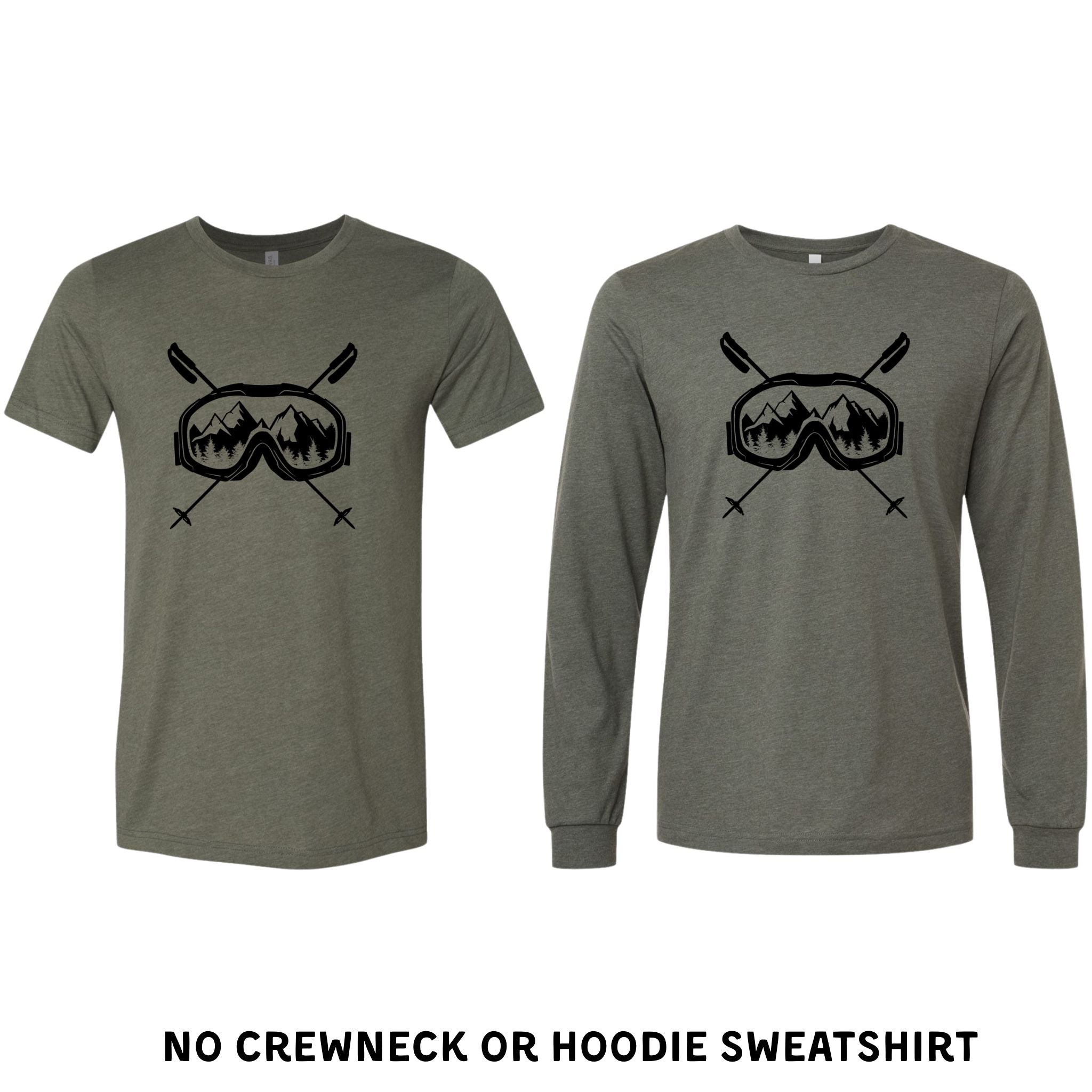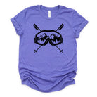 This skiing tshirt is a must-have for any ski enthusiast looking for comfort and style on and off the slopes. The unisex ski tee features a striking graphic ski shirt design with ski goggles and crossed poles set against a mountain backdrop, printed on a soft cotton blend fabric that delivers lasting comfort throughout your winter sports wear. Crafted from a premium poly cotton blend, this Bella Canvas shirt combines durability with breathability to keep you comfortable during casual ski style or après-ski activities. Available in sizes S through 2XL and 11 vibrant colors, it fits a wide range of body types and preferences.