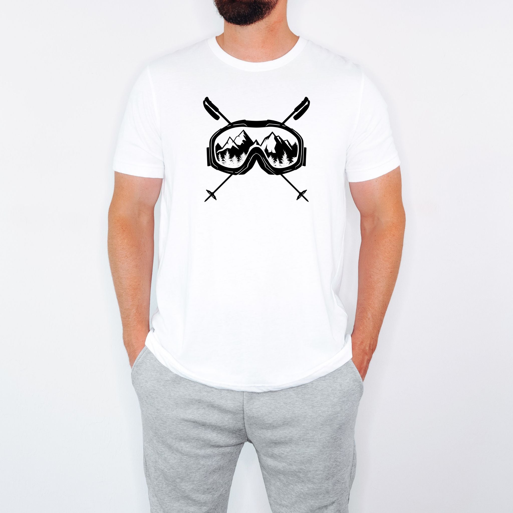 This soft cotton tee uses hand printed shirt techniques to ensure the ski goggles design remains sharp and vibrant after multiple washes, reflecting the quality and care behind each piece. The Bella + Canvas brand is known for its superior fabric and fit, making this mountain ski apparel not only stylish but also reliable for everyday wear. Whether you’re buying it as a ski enthusiast gift or adding to your own winter wardrobe, this ski shirt offers both function and fashion.