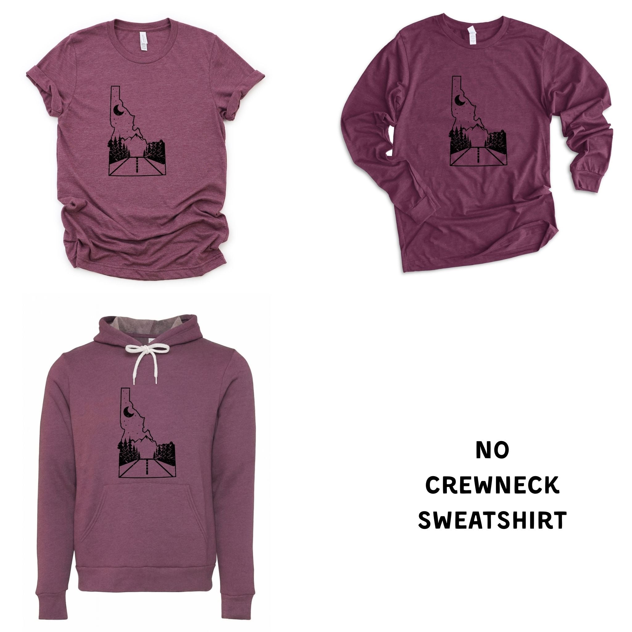 Idaho Road TShirt | Long Sleeve | Crewneck Sweatshirt | Hoodie | Unisex Fit
