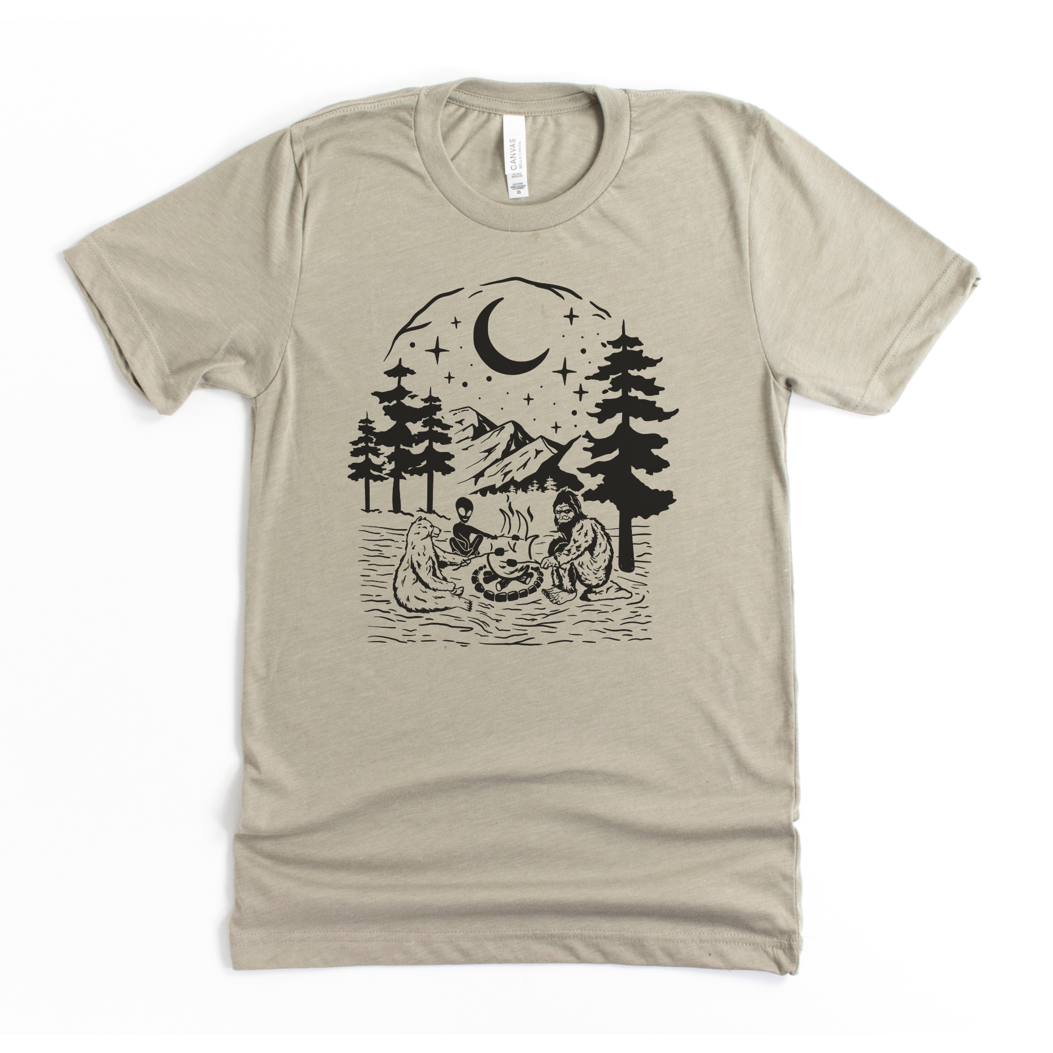 Bear, Alien & Sasquatch Camping Graphic Tee