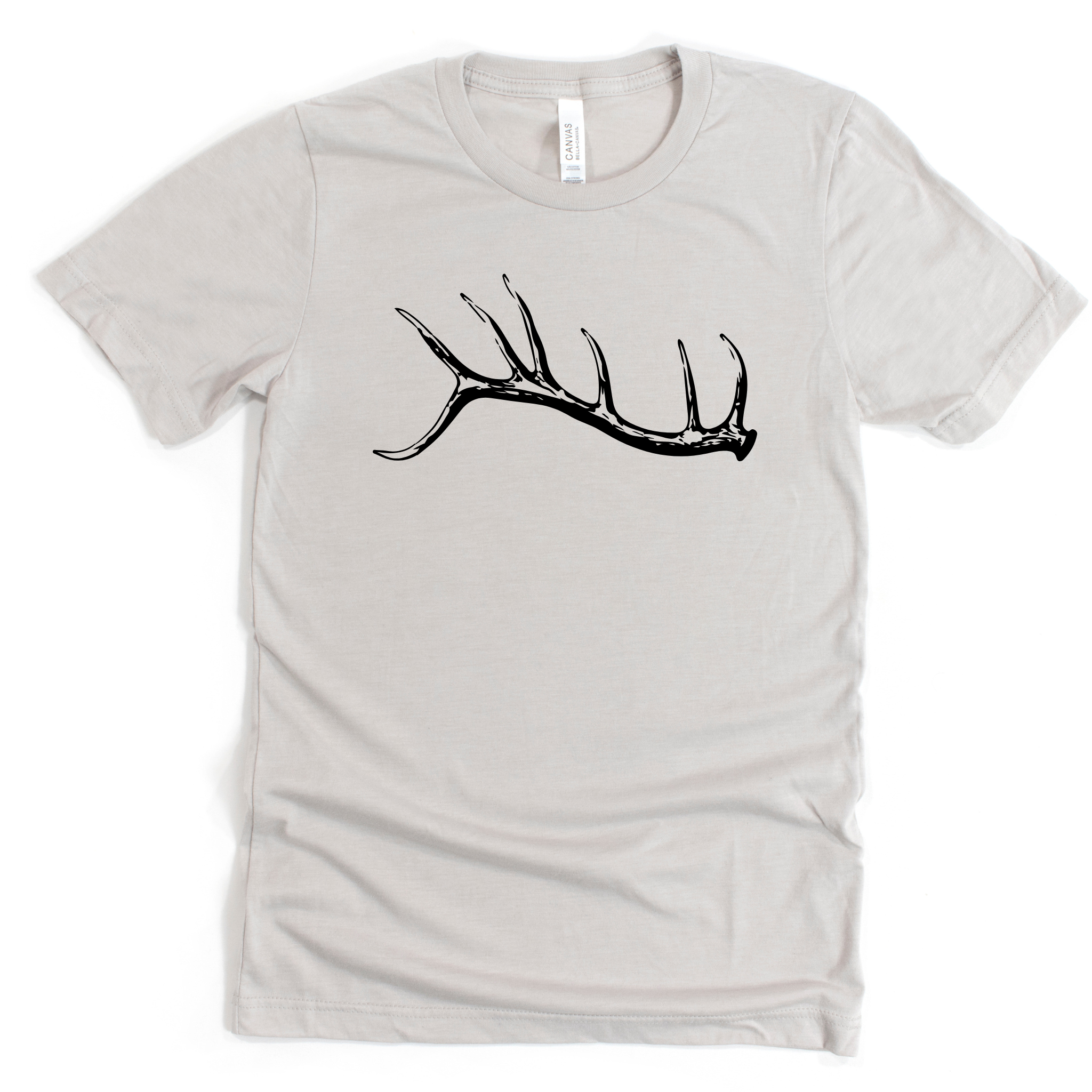 elk antler tee, elk antler shirt, western graphic, outdoor tee, hunting style, rustic shirt, nature graphic, mountain tee, unisex tshirt, idaho apparel, minimal tee, elk lover gift, hand printed tee