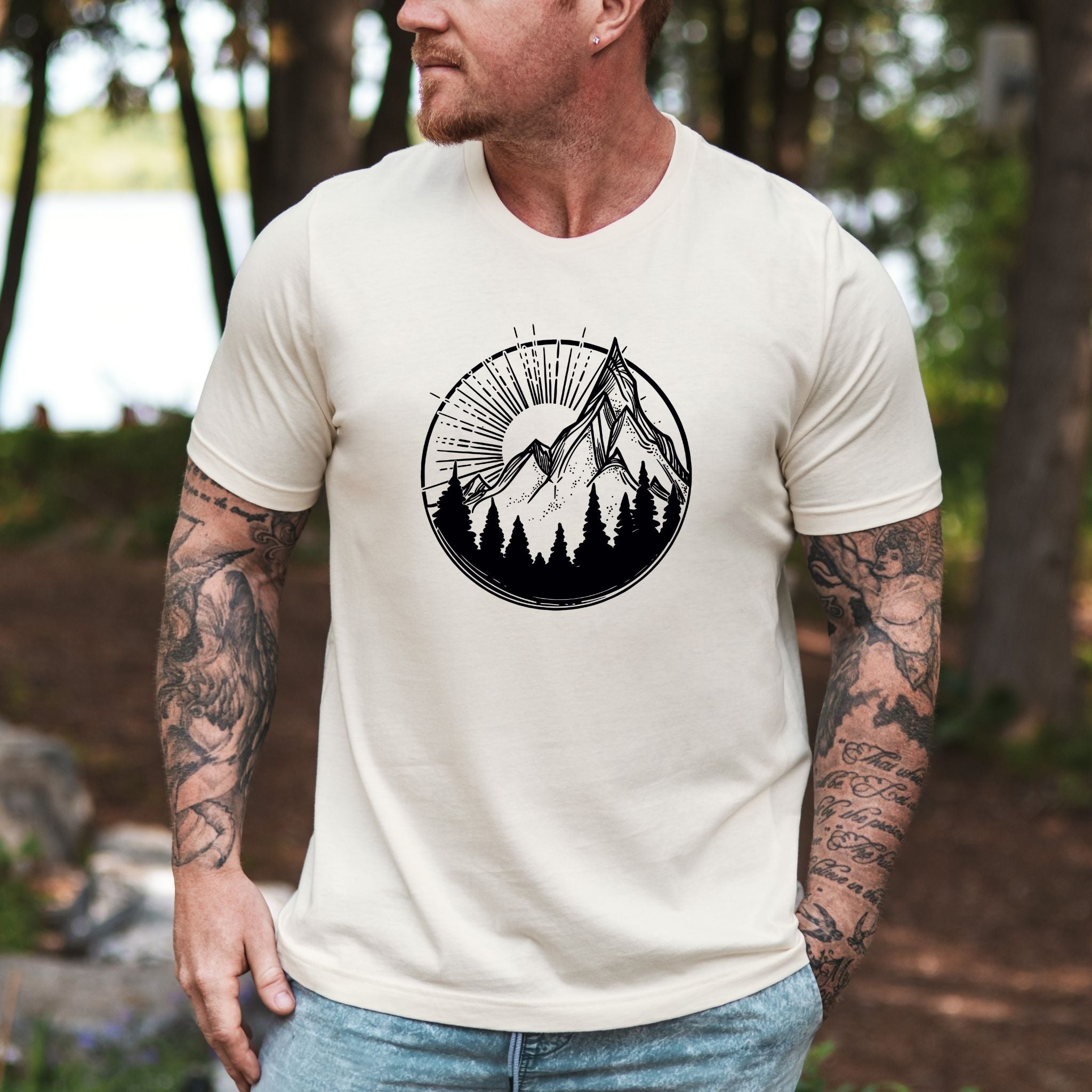 mountain graphic tee, sunrise mountain, nature graphic shirt, outdoor tee, scenic mountain tee, adventure shirt, unisex graphic tee
