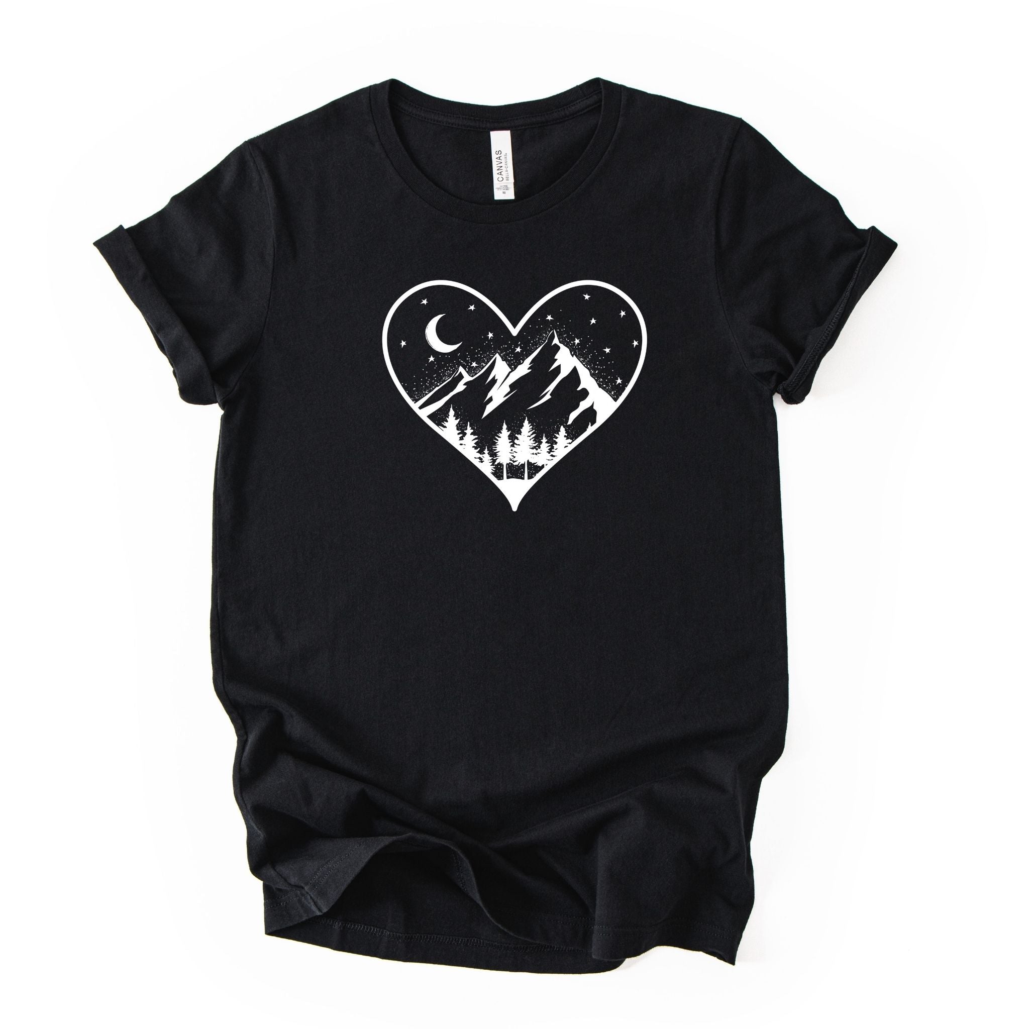 mountain heart tee, nature graphic tee, outdoor love shirt, mountain graphic shirt, scenic tee, unisex graphic tee