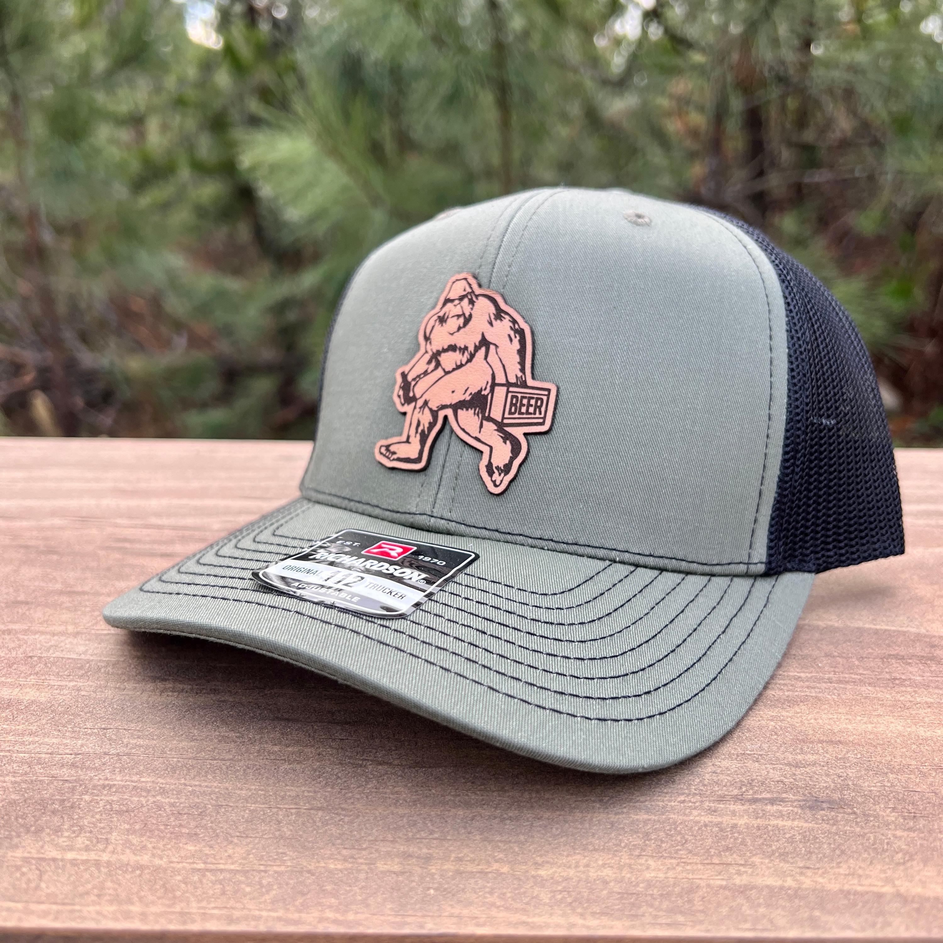 Bigfoot With Beer Leather Patch Hat – 208tees