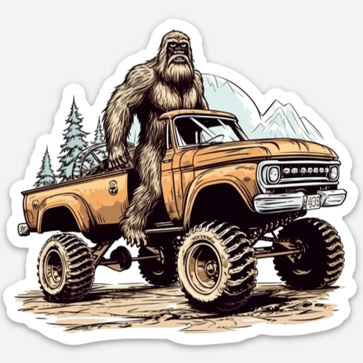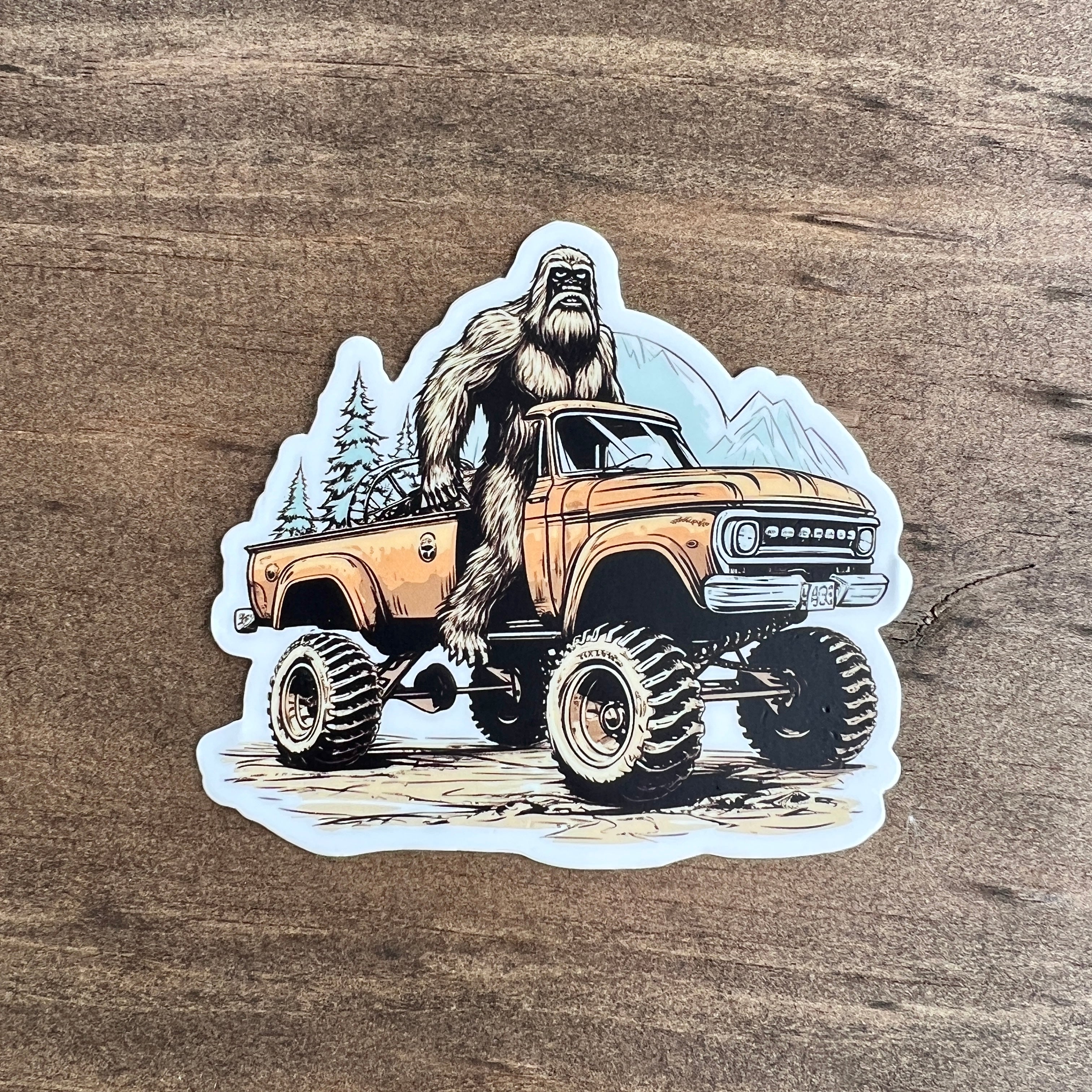 This bigfoot vinyl sticker is perfect for Sasquatch enthusiasts who want to showcase their love for mountain adventure decals while adding a durable and waterproof vinyl decal to their outdoor gear. Designed to stick firmly on any surface, this dishwasher safe sticker ensures long-lasting use whether placed on water bottles, laptops, car windows, or bumpers. Measuring approximately 3.5 by 3 inches, this high quality sticker features vibrant colors and intricate details that capture the wild spirit of Bigfoot as he conquers backroads in a lifted truck. Made in the USA, it offers superior adhesion and weatherproof protection to withstand rugged conditions.
