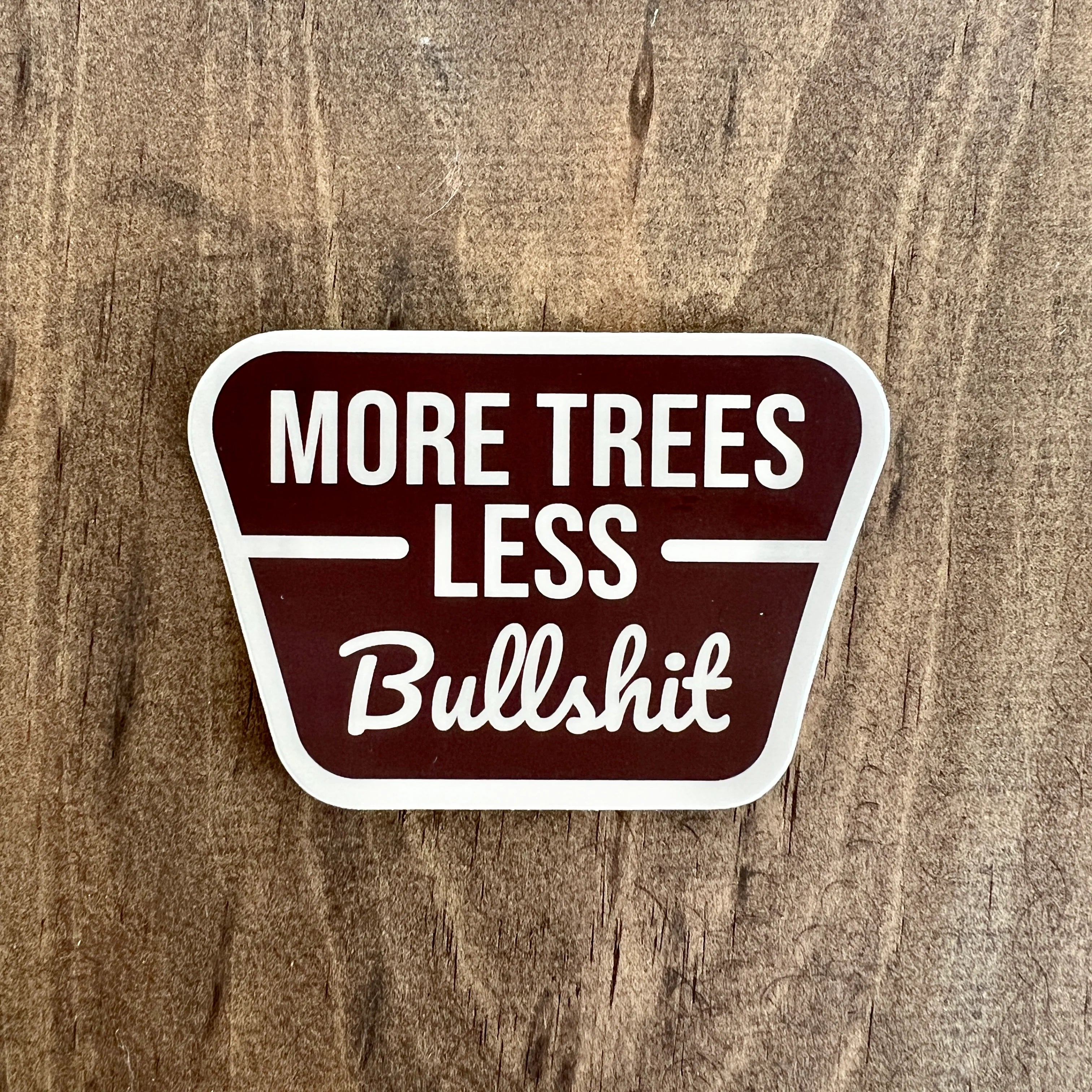 The More Trees Sticker is a waterproof vinyl decal designed to promote environmental awareness while delivering lasting durability. This More Trees Less Bullshit Sticker Decal measures approximately 3.5 by 3 inches, making it the perfect size to display on laptops, water bottles, cars, or any outdoor surface. Its weatherproof and dishwasher safe features ensure it withstands rain, sun, and regular cleaning without fading or peeling. Crafted in the USA, this eco-friendly sticker helps you promote sustainability with a bold message that encourages green living and supports nature.