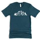 Simple mountain scene graphic tee with a clean, minimalist outdoor design. Hand screenprinted in North Idaho on a premium unisex Bella + Canvas shirt.