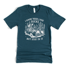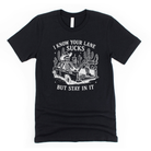 Keep your cool (and your lane) with this funny “I Know Your Lane Sucks But Stay In It” t-shirt featuring a skeleton sipping iced coffee in a truck bed. Printed on a soft, high-quality tee, it’s the perfect blend of sarcasm, caffeine, and country humor.Our buttery soft Bella + Canvas garments are manufactured in South America or Los Angeles, with components from the USA & Hand printed in the USA.