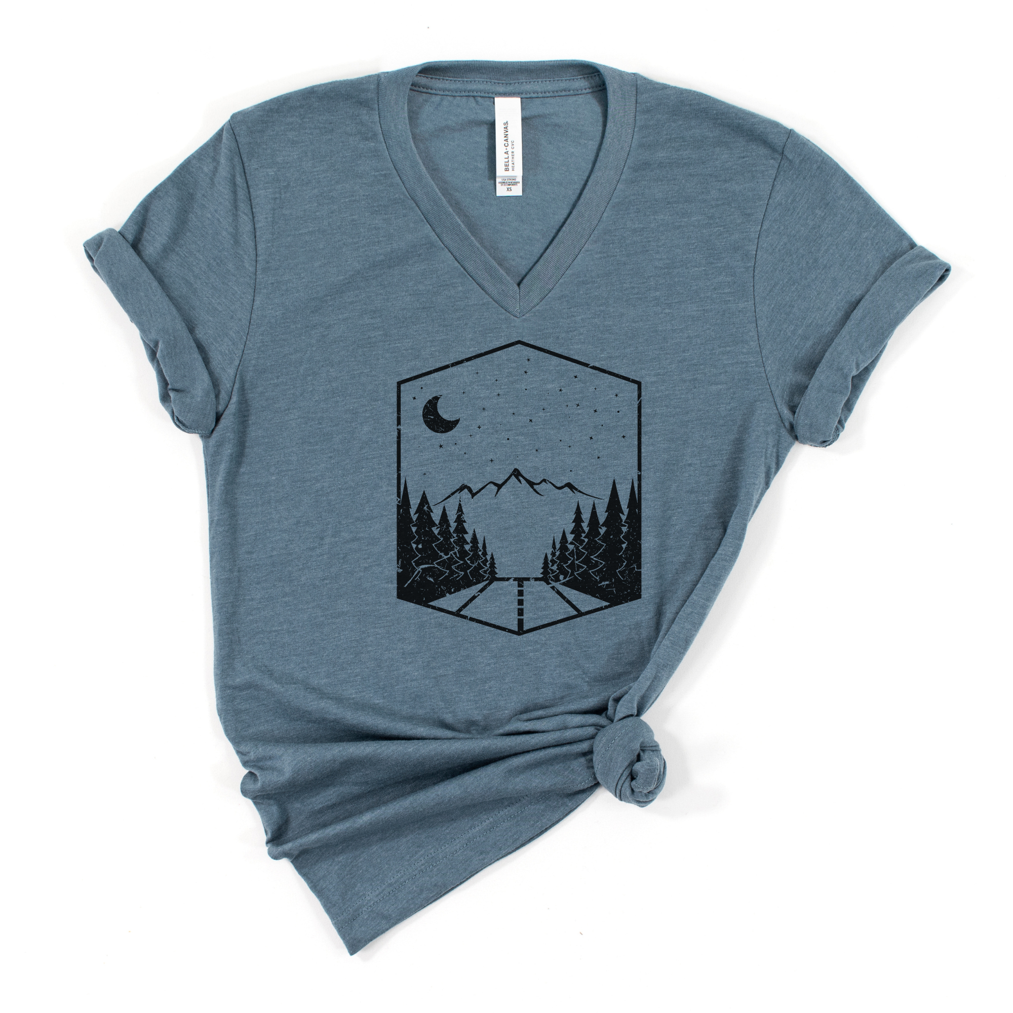 mountain road shirt, roadtrip graphic tee, forest logo shirt, mountain forest tee, outdoor graphic shirt, adventure tee, camping graphic tee, travel shirt, winding road tee, nature lover shirt, unisex graphic tee, womens graphic tee, boutique graphic shirt