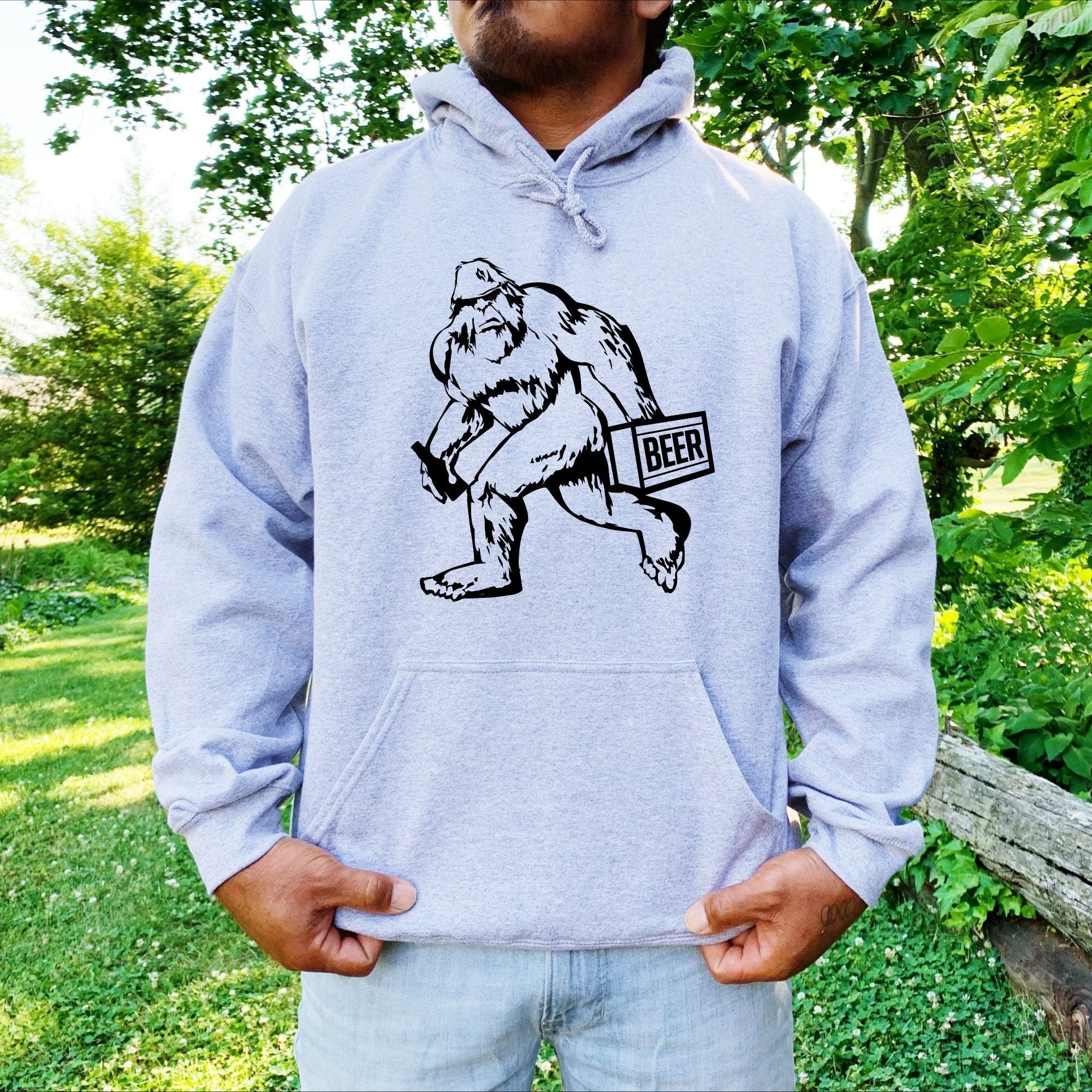 This premium, comfortable hoodie or crewneck features an eye-catching design of Bigfoot toting a case of beer. Perfect for beer and Bigfoot enthusiasts, it's sure to turn heads. Made from high-quality materials, this comfy sweatshirt is sure to last.