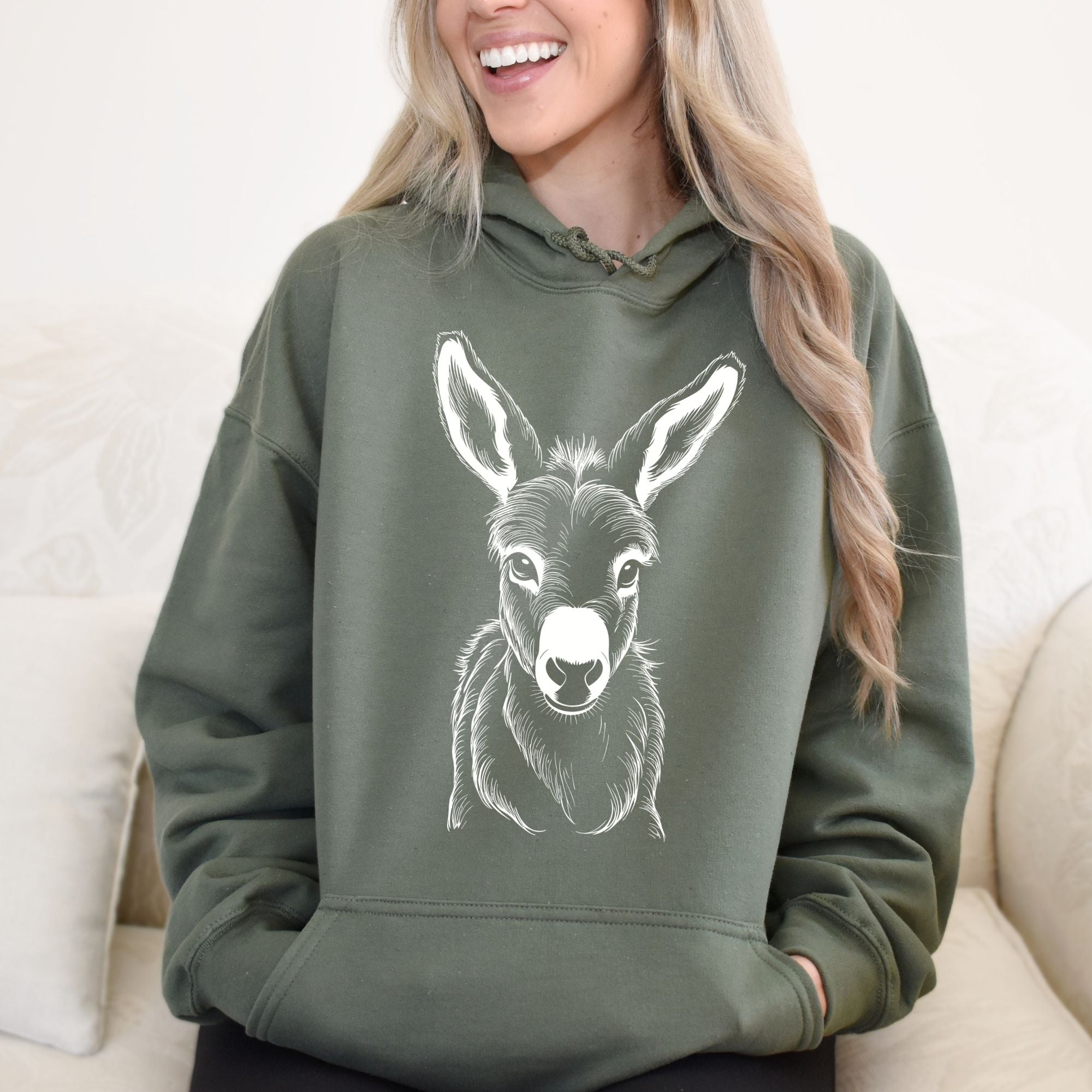 Get cozy with our delightful baby donkey sweatshirt! Crafted from the finest premium cotton, this super soft garment offers ultimate comfort and warmth. Designed with a cute baby donkey print, it adds an adorable touch to your wardrobe. Stay stylish without compromising on comfort - the perfect attire for lounging or casual outings. Elevate your fashion game while showing off your love for these lovable animals. Unleash your cuteness in this irresistible donkey sweatshirt - a must-have for animal enthusiasts and comfort seekers alike!