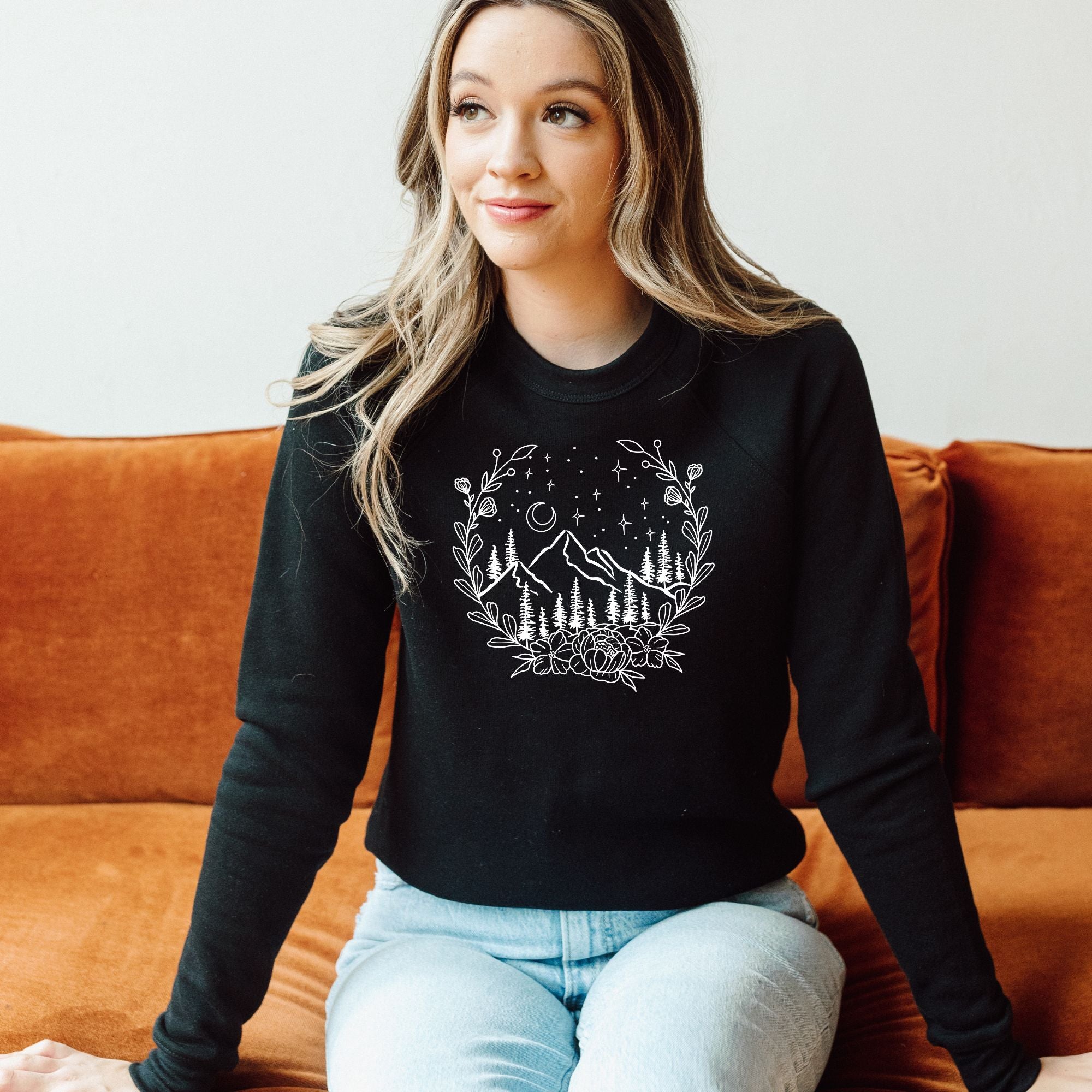 Floral Mountain Scene Bella Canvas Sweatshirt or Hoodie *Unisex Fit*