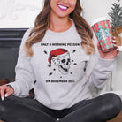 Introducing the ultimate holiday attire! This super soft sweatshirt combines hilarity and comfort in one extraordinary package. Featuring a whimsical skeleton donning a Santa hat, there's no doubt that this shirt brings the laughter. But the amusement doesn't stop there, as the quote "Only a morning person on December 25th" adds a touch of relatability to the design. Made from the coziest material, this sweatshirt ensures unparalleled comfort throughout the festive season. Prepare for unstoppable cheer and laughter with this super funny Christmas shirt that is perfect for spreading joy at holiday gatherings or lounging by the fireplace.