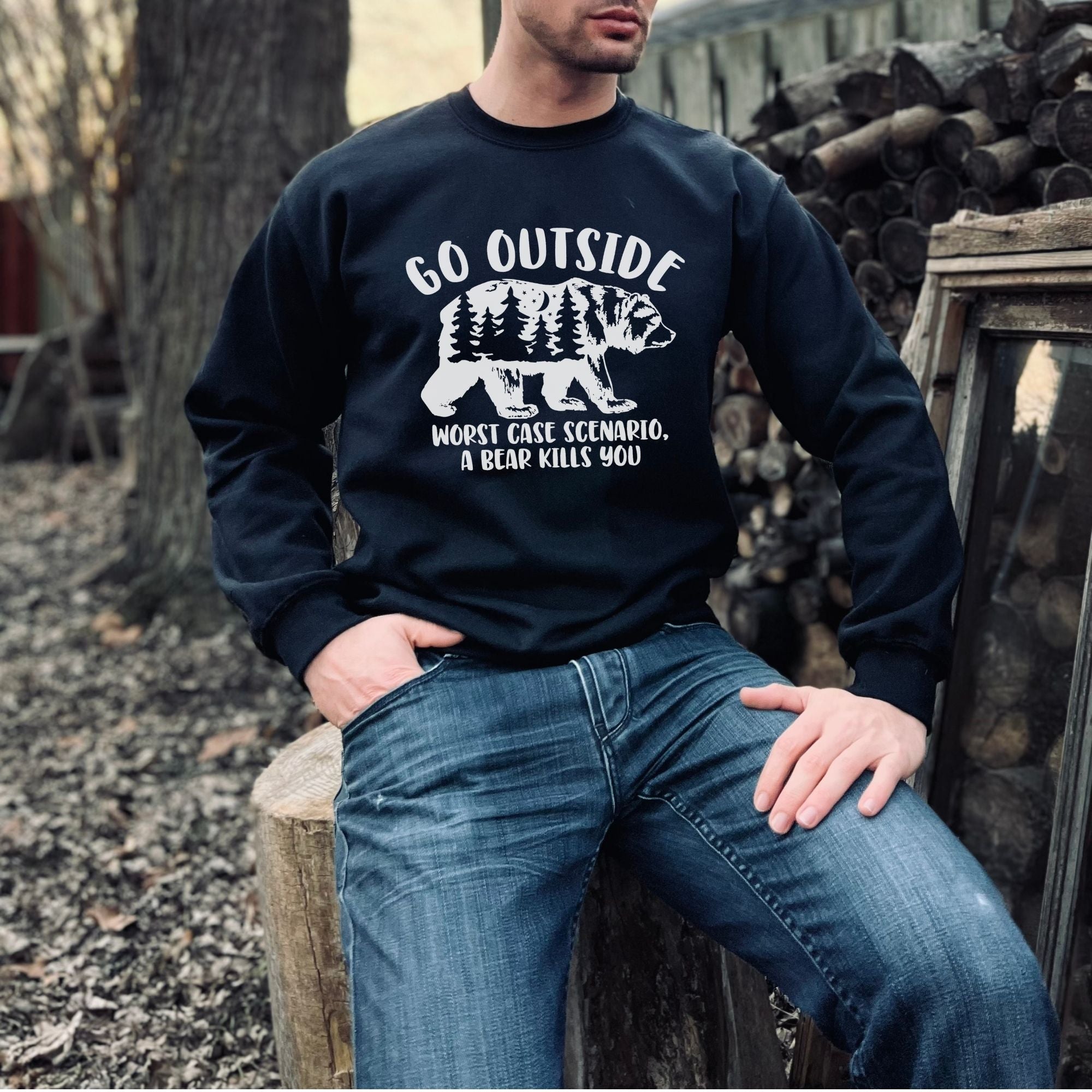 Hilarious Bear Sweatshirt - Go Outside Gildan Hoodie or Crewneck *UNISEX FIT*