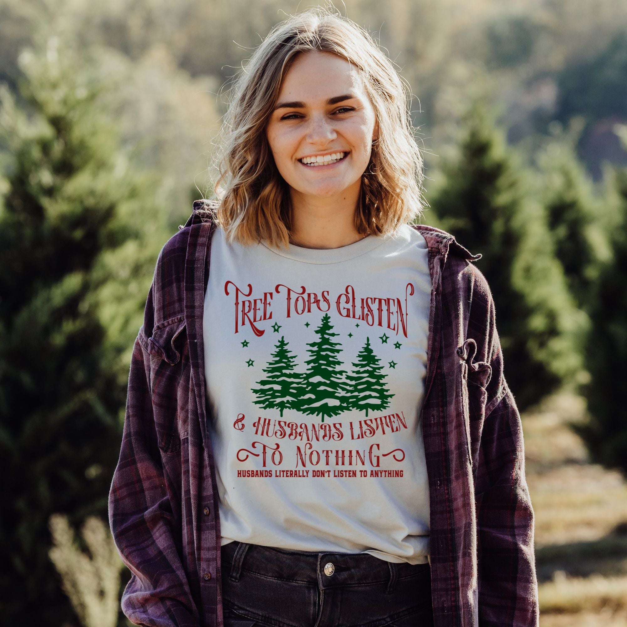 Get ready to laugh with our Hilarious Christmas Graphic Tee! Perfect for wives who know the struggle of trying to get their husbands to listen during the holidays. Featuring a festive design and a comfortable unisex fit, this tee is sure to make you the life of the party.