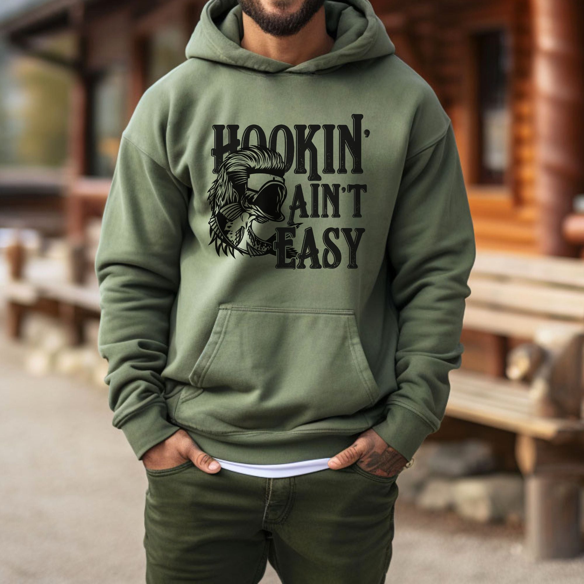 Cast your worries away and hook a stylish look with our Hookin' Ain't Easy sweatshirt. Perfect for nature lovers, this versatile sweatshirt comes in both hoodie and crewneck styles. No matter your preference, you'll stay cozy and effortlessly cool while showing off your love for fishing.