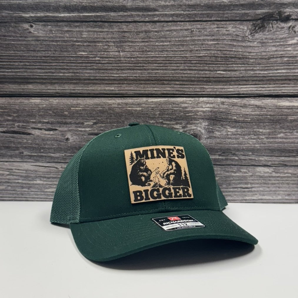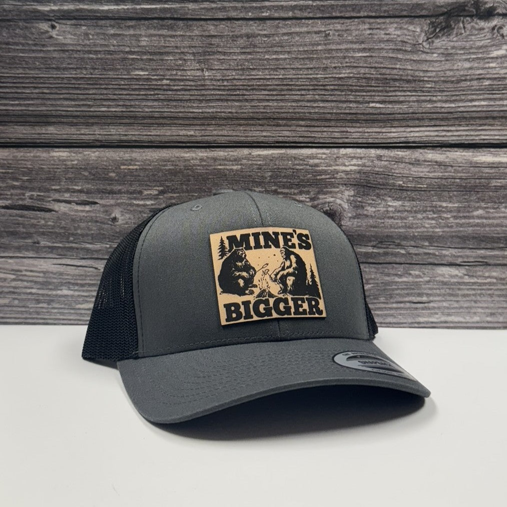 “Mine’s Bigger” Bigfoot & Bear Leather Patch Hat – 208 Brim Co