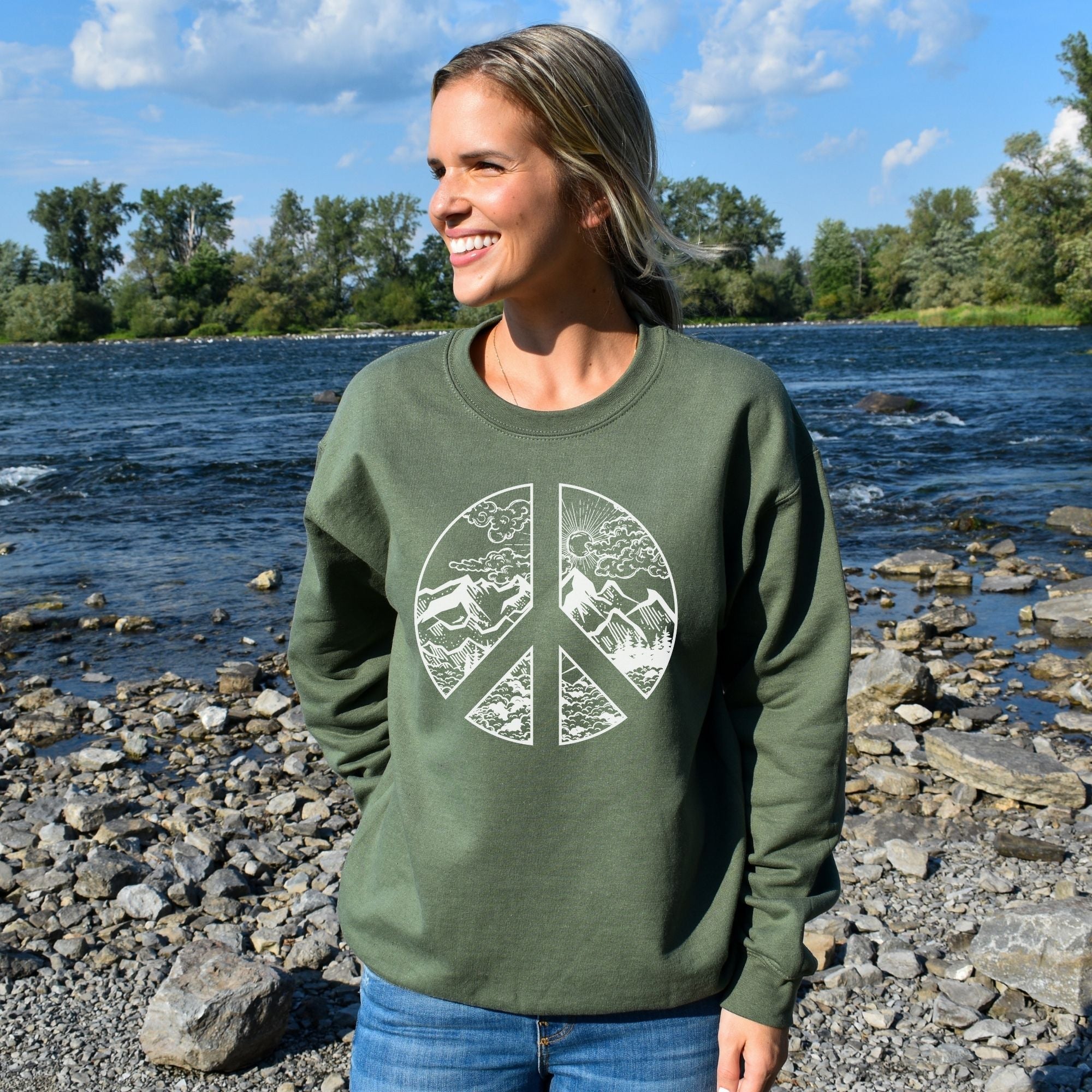 This Peace Sweatshirt is the perfect way to express your love for nature and adventure. With a detailed peace sign design, it's perfect for outdoor activities like hiking, camping, and exploring. Its super soft and comfortable fabric will keep you cozy all day.