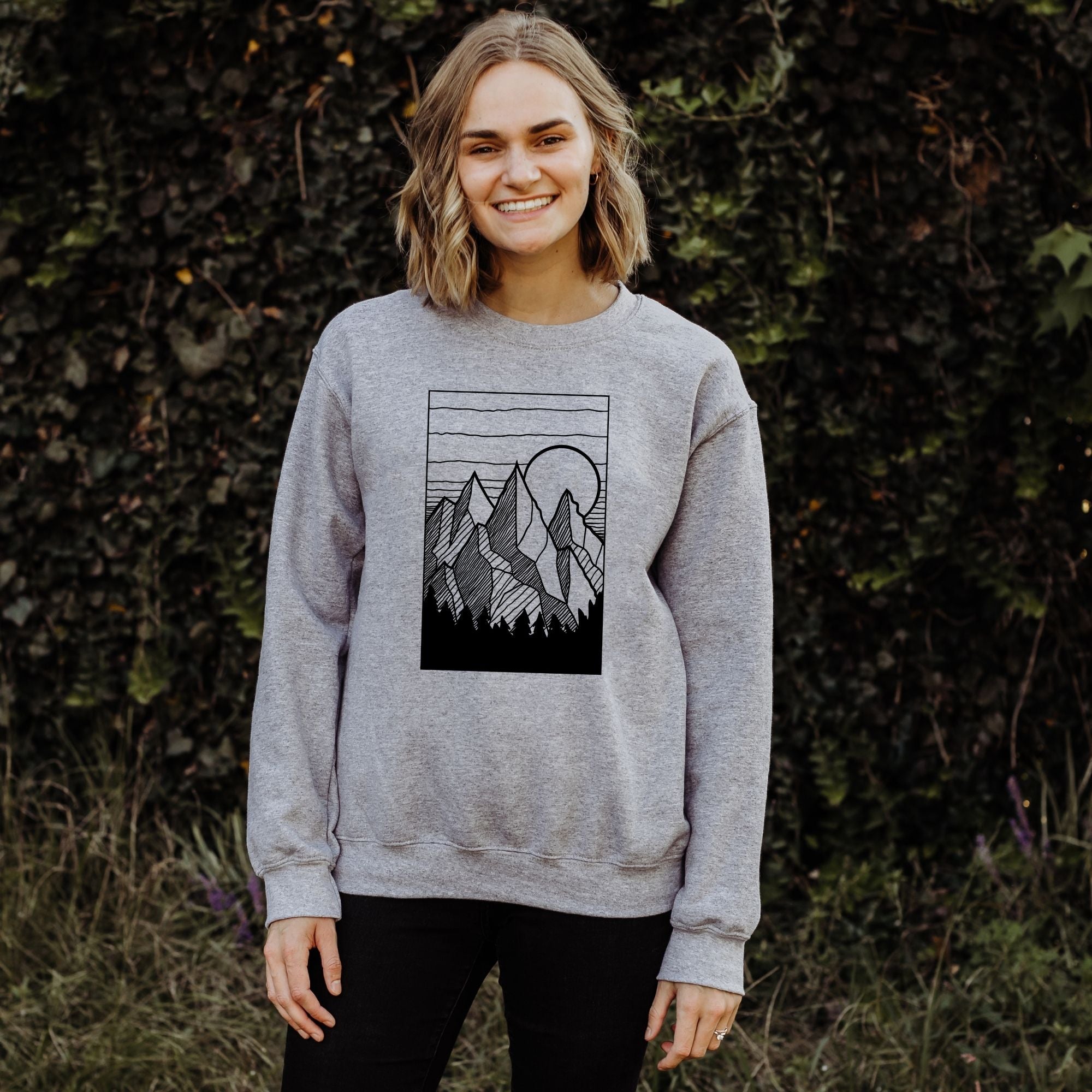 Explore the Outdoors with Our Stylish Geometric Wilderness Mountain Sweatshirt