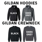 These cozy Gildan Sweatshirts are manufactured in South America and handprinted in North Idaho. Size up for an oversized comfy fit!