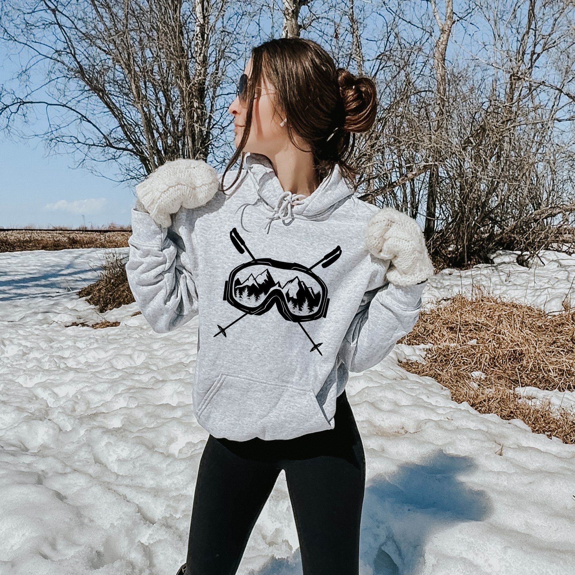 Stay Stylish on the Slopes with a Ski Goggles and Mountain Print Sweatshirt