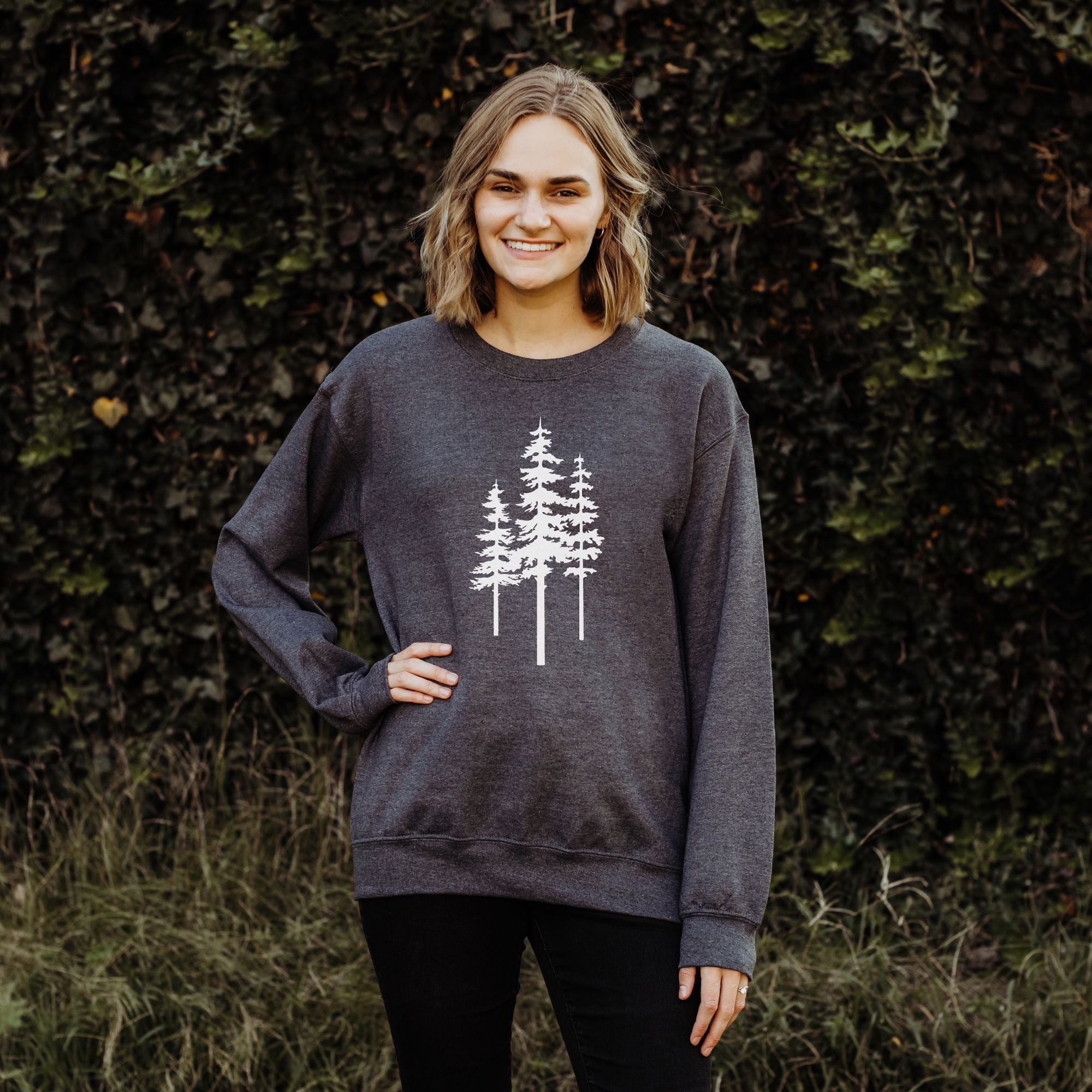 This Three Trees Sweatshirt is the ideal choice for any nature lover. Crafted from high-quality material, this sweatshirt features a simple logo of three tall pine trees. Perfect for expressing your love of the outdoors, this stylish and comfortable sweatshirt will let you stay warm while showing off your style.