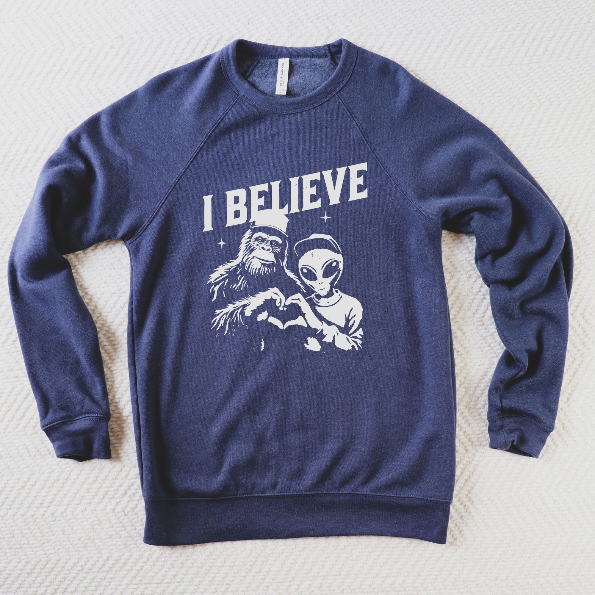 Believe Alien <3 Bigfoot Bella Canvas Sweatshirt or Hoodie *Unisex Fit*